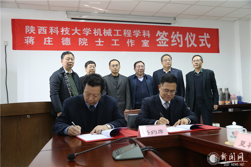 在姚書志、曹巨江、鄭恩讓、趙立波及學(xué)科辦、機(jī)電學(xué)院主要負(fù)責(zé)人的共同見證下,馬建中與蔣莊德簽署合作協(xié)議。