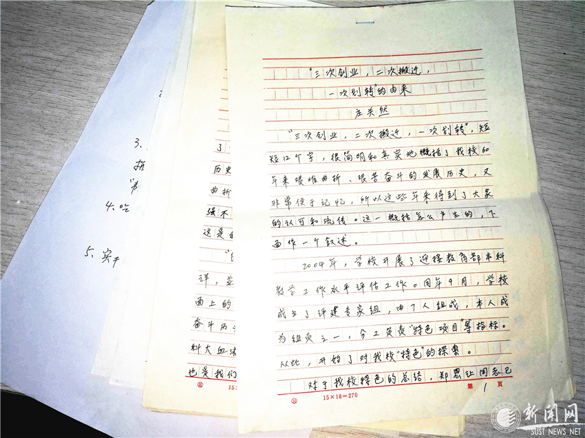 莊關(guān)然教授在受邀為學(xué)校大學(xué)精神的凝練提交建議時(shí),不顧年事已高,于9月13日至15日連寫了《關(guān)于“三次創(chuàng)業(yè),兩次搬遷,一次劃轉(zhuǎn)”的由來》等四封信,敘述有關(guān)歷史細(xì)節(jié),提出自己的觀點(diǎn)。總計(jì)6000余字的信件,73歲的老人完全是用工筆正楷書寫的,文字秀麗,頁面整潔??梢韵胂蟮剑辖淌谑窃谏钏际鞈]后一氣呵成,寫出了忠誠,寫就了愛校榮校的真性情。