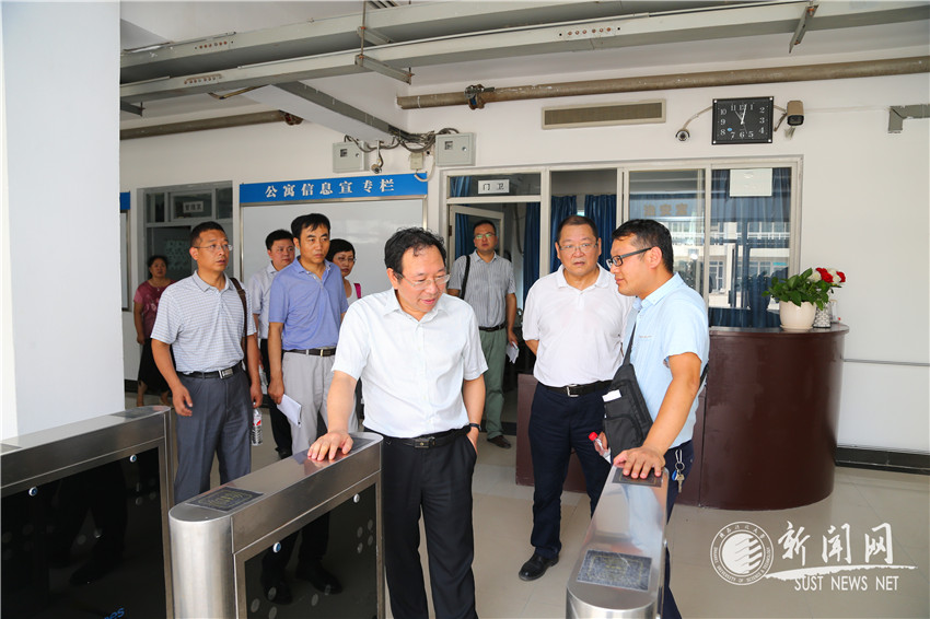 本次檢查的重點為部分學(xué)科調(diào)整后學(xué)院的搬遷工作、暑假在建施工項目和迎新準(zhǔn)備工作。在位于教學(xué)區(qū)的國際交流中心,姚書志、王樹茂一行實地察看文理學(xué)院和職業(yè)教育師范學(xué)院的嶄新的辦公區(qū)和部分實驗室,詳細(xì)了解兩個學(xué)院的搬遷和新學(xué)期開學(xué)準(zhǔn)備工作;隨后校領(lǐng)導(dǎo)前往2期教學(xué)樓施工現(xiàn)場、人工湖、老教工食堂等地,實地察看施工現(xiàn)場周邊環(huán)境綠化、人工湖的貫通改造和老教工食堂天然氣工程等工作進展情況,并認(rèn)真聽取了化學(xué)與化工學(xué)院通風(fēng)和使用的實訓(xùn)樓部分的水電改造、圖書館空調(diào)改造和引進人才配套房屋裝修改造等工程的進度匯報;校領(lǐng)導(dǎo)又來到學(xué)生生活區(qū),頂著烈日深入學(xué)生生活區(qū)的整體景觀綠化提升、學(xué)校醫(yī)院、大學(xué)生活動中心等工程和學(xué)生及教工新食堂裝修設(shè)計項目的施工現(xiàn)場,一一察看主要路面鋪磚、景觀規(guī)劃和管網(wǎng)鋪設(shè)等暑期工程的建設(shè)進度和具體實施情況。最后,校領(lǐng)導(dǎo)來到與大學(xué)生生活息息相關(guān)的浴室維修改造工程現(xiàn)場、新生公寓和學(xué)生餐廳等地,仔細(xì)查看新生宿舍的家具配備、粉刷清掃和門禁系統(tǒng),了解清真餐廳中央空調(diào)安裝及裝修改造情況。