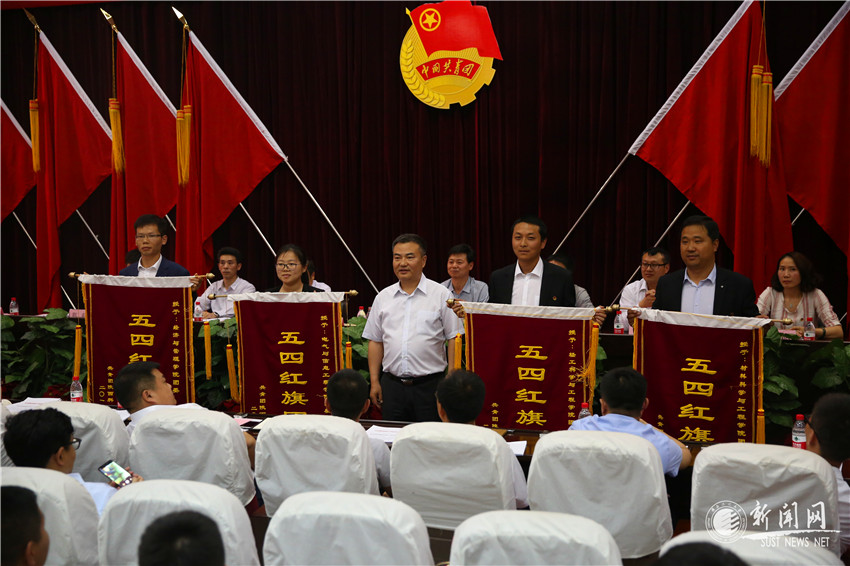 大會授予材料科學(xué)與工程學(xué)院團(tuán)委、電氣與信息工程學(xué)院團(tuán)委、輕工科學(xué)與工程學(xué)院團(tuán)委、經(jīng)濟(jì)與管理學(xué)院團(tuán)委4個基層團(tuán)組織“五四紅旗團(tuán)委”稱號;授予徐衛(wèi)濤、賈謀、張蕓、劉育濤4名團(tuán)工作負(fù)責(zé)人“共青團(tuán)工作先進(jìn)個人”稱號;授予食制142團(tuán)支部等10個團(tuán)支部“十佳團(tuán)支部”稱號;授予輕工科學(xué)與工程學(xué)院包裝142團(tuán)支部等41個團(tuán)支部“先進(jìn)團(tuán)支部”稱號;授予環(huán)境科學(xué)與工程學(xué)院環(huán)境142團(tuán)支部“春季學(xué)生舍源微生物差異調(diào)查”等10項團(tuán)日活動“十佳主題團(tuán)日活動”稱號;授予李文斌等20名團(tuán)員“優(yōu)秀團(tuán)員標(biāo)兵”稱號;授予馮凱等835名團(tuán)干部“優(yōu)秀團(tuán)干”稱號;授予董文瑞等835名團(tuán)員“優(yōu)秀團(tuán)員”稱號;授予音樂協(xié)會等10個大學(xué)生社團(tuán)“十佳大學(xué)生社團(tuán)”稱號。