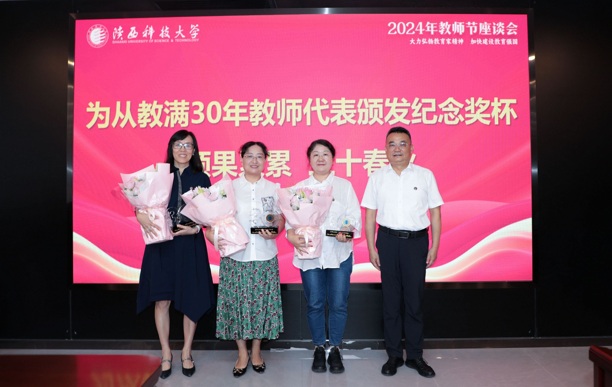 “至今還記得1994年7月那個(gè)炎炎烈日,咸陽校區(qū)南區(qū)建成不久,我懷揣夢想來到學(xué)校報(bào)到。非常感謝學(xué)校的支持,給我各種鍛煉的機(jī)會(huì),我在2004年獲得了青年教學(xué)十杰稱號(hào)。2006年學(xué)校東遷西安新校區(qū),大環(huán)境的改變也帶來了很多機(jī)遇,我的科研能力獲得了明顯提升,先后主持多項(xiàng)科研項(xiàng)目,多次獲得國家級(jí)獎(jiǎng)勵(lì)。一轉(zhuǎn)眼30年過去了,西安校區(qū)已經(jīng)到處綠樹成蔭,看著一屆屆學(xué)生學(xué)有所長、學(xué)有所用,成為社會(huì)棟梁,我由衷的感到自豪與高興!”教師代表李頎回顧自己30年的從教之路感慨萬千。