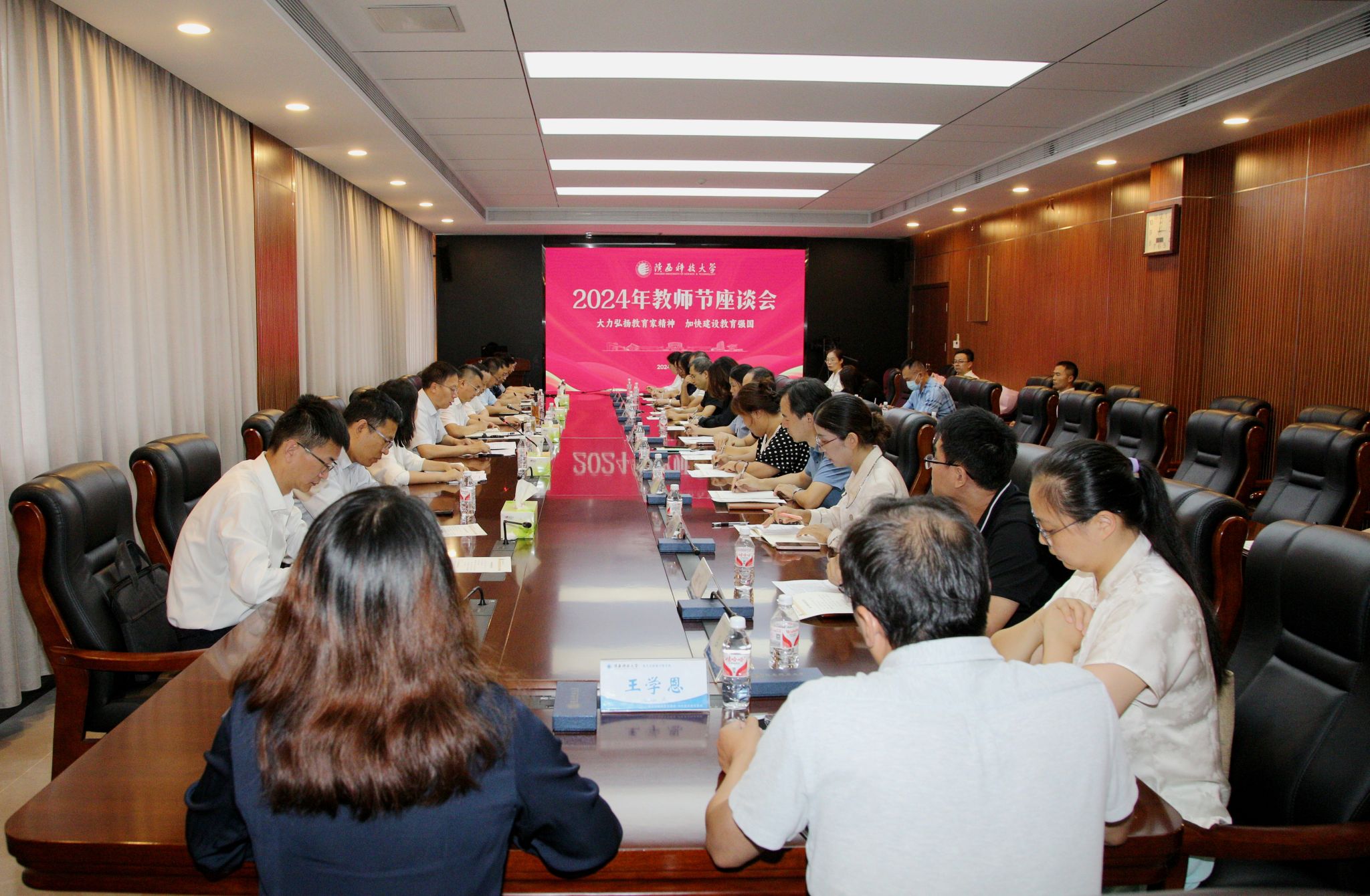 9月9日下午,學(xué)校召開“大力弘揚(yáng)教育家精神,加快建設(shè)教育強(qiáng)國”主題座談會(huì),慶祝第40個(gè)教師節(jié)的到來。校黨委書記樊建武、校黨委副書記王道安出席會(huì)議。會(huì)議由副校長蒲永平主持。