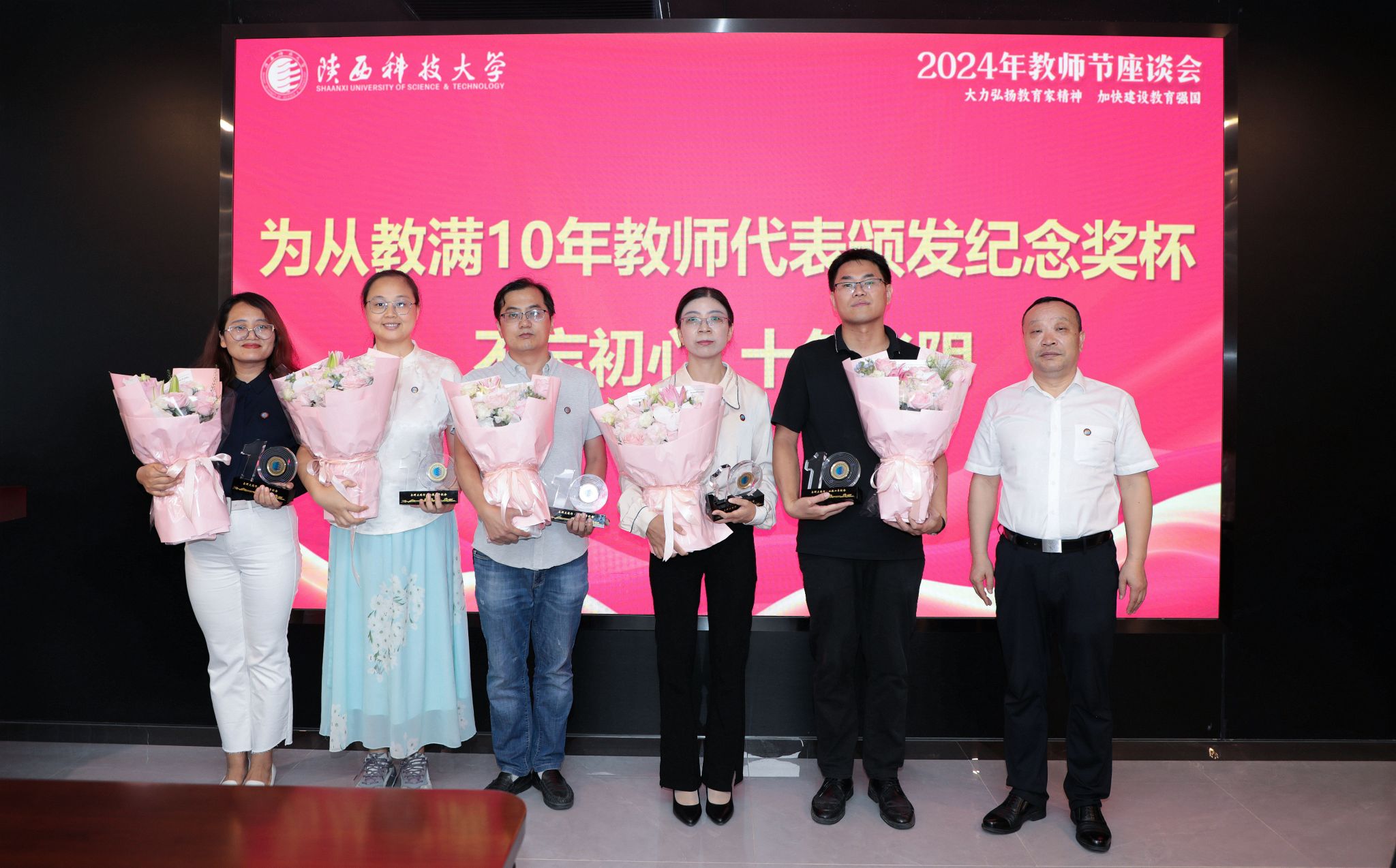 “剛開始站上講臺(tái)的時(shí)候,會(huì)覺得局促不安,每天想的最多的是‘我怎樣才能上完這節(jié)課’,上完課后會(huì)覺得很放松;現(xiàn)在每天想的是‘我該怎樣講,學(xué)生才能接受的多一些,該如何組織課堂,才能讓學(xué)生收獲比知識(shí)更多、可以受益終身的東西’。往后二十年里,我將與陜科大一起共同進(jìn)步,不斷提升教學(xué)科研水平,助力學(xué)校實(shí)現(xiàn)復(fù)興騰飛夢想。”從教滿10年教師代表曹曉倩談了與學(xué)校一起成長的蛻變。
