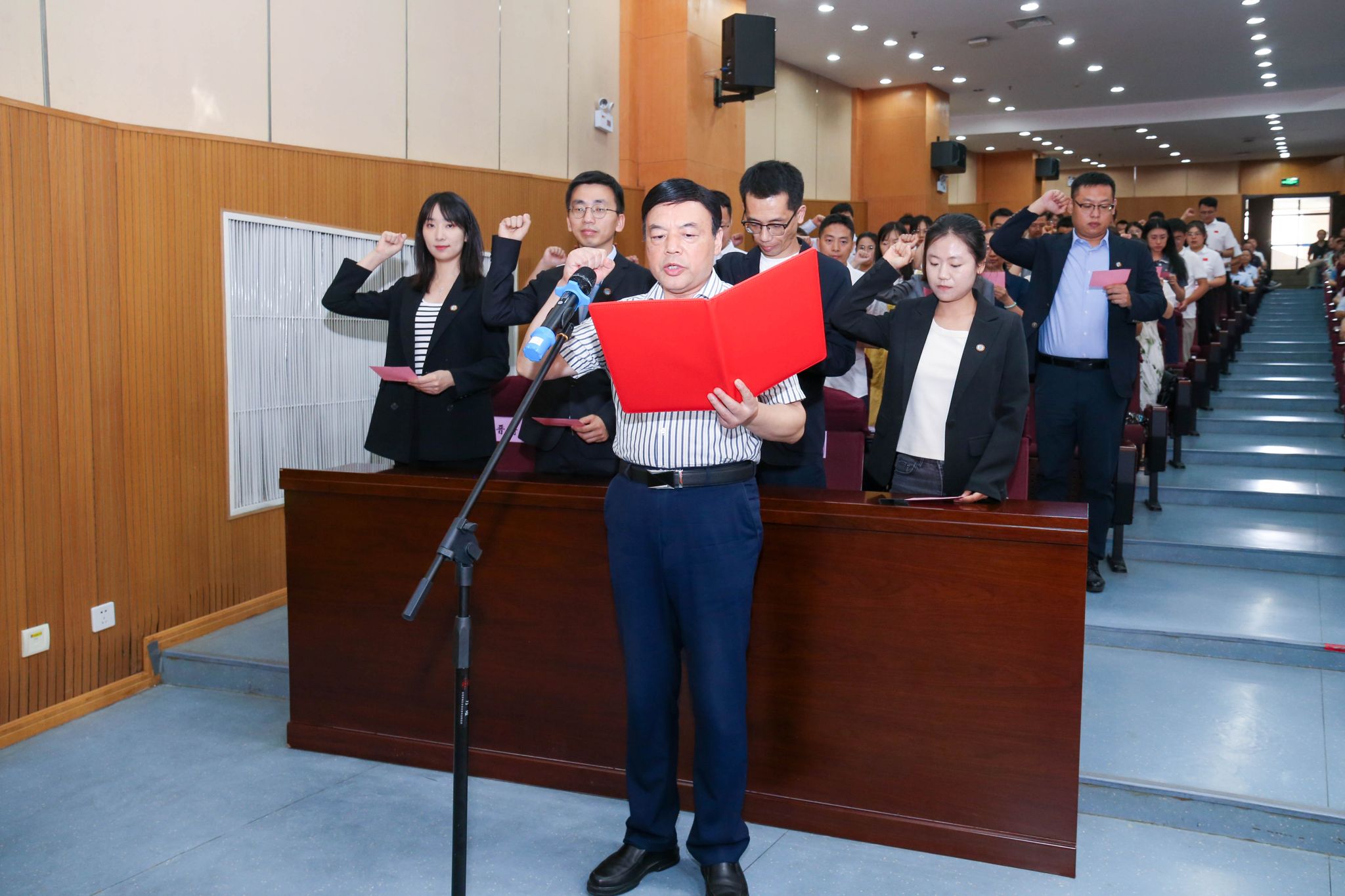 在全國模范教師、二級教授、數(shù)學(xué)與數(shù)據(jù)科學(xué)學(xué)院張小紅的領(lǐng)誓下,在場全體新入職教師莊嚴(yán)宣誓,嘹亮的宣誓聲回蕩在會場,彰顯著新入職教師們積極投身教育強國建設(shè)的信念和決心。