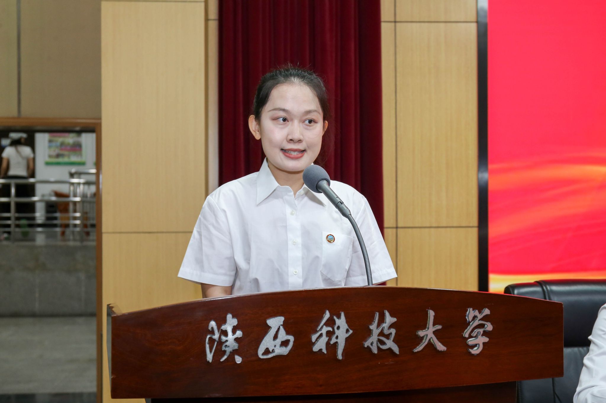 學(xué)生代表、我校第23屆研究生支教團成員、經(jīng)濟與管理學(xué)院(亞歐貿(mào)易與數(shù)字經(jīng)濟學(xué)院)李佳雨向老師們送上節(jié)日祝福并發(fā)表感言。