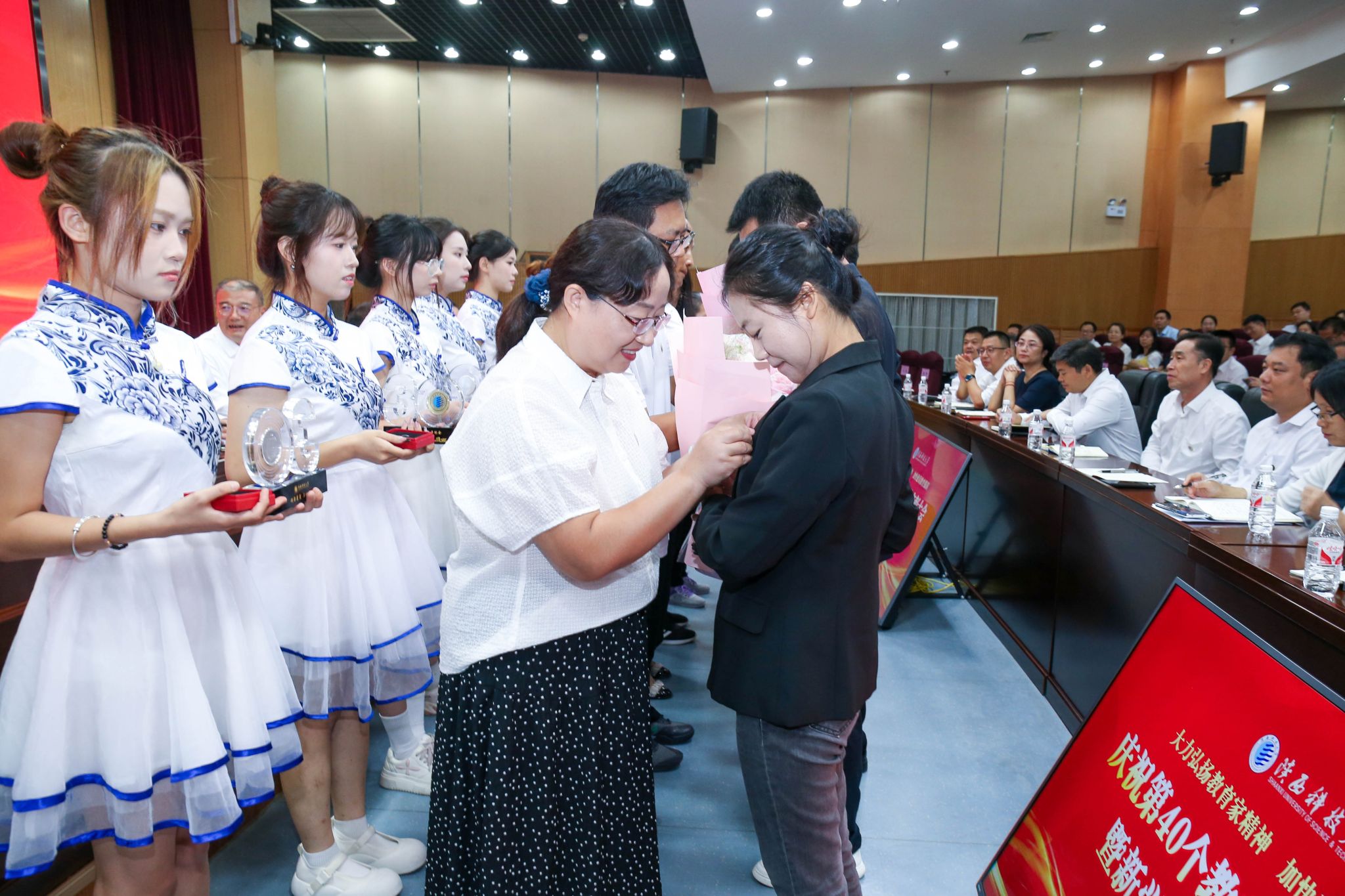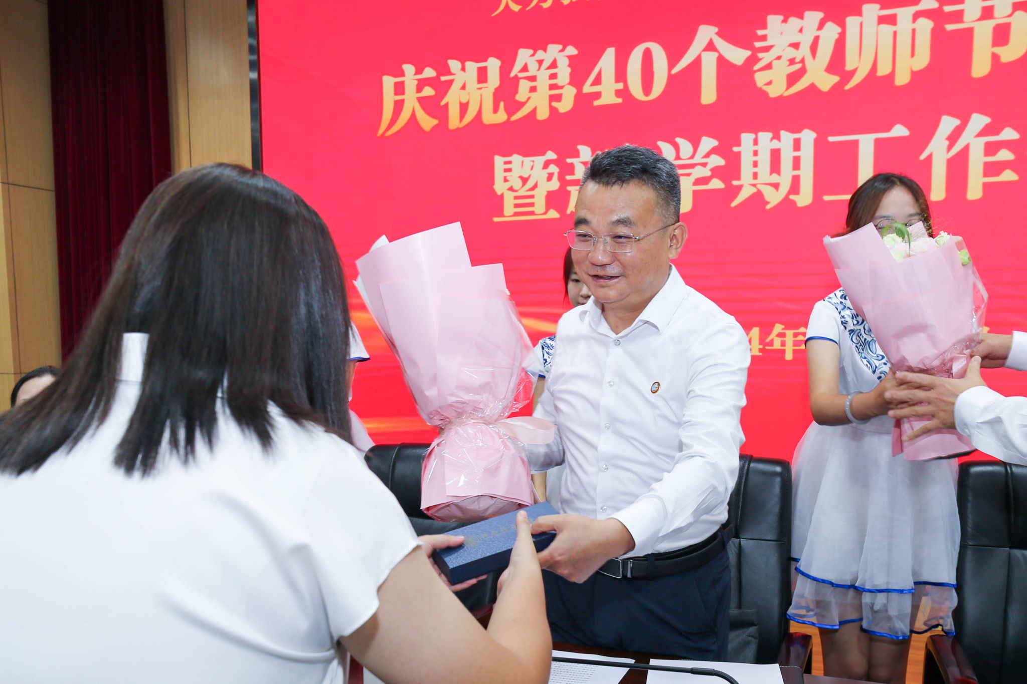 大會表彰了2023至2024學(xué)年在教學(xué)、科研、人才、管理服務(wù)等方面工作中做出突出貢獻的優(yōu)秀教師,與會校領(lǐng)導(dǎo)向優(yōu)秀教師代表送上鮮花和印有“教育家精神”的紀(jì)念品,表達祝福和感謝。會議號召全體教職工要以獲得表彰的優(yōu)秀教師為榜樣,大力弘揚踐行教育家精神,以更加飽滿的熱情、更加昂揚的斗志、更加務(wù)實的作風(fēng),投入到學(xué)校改革發(fā)展各項事業(yè)中去。