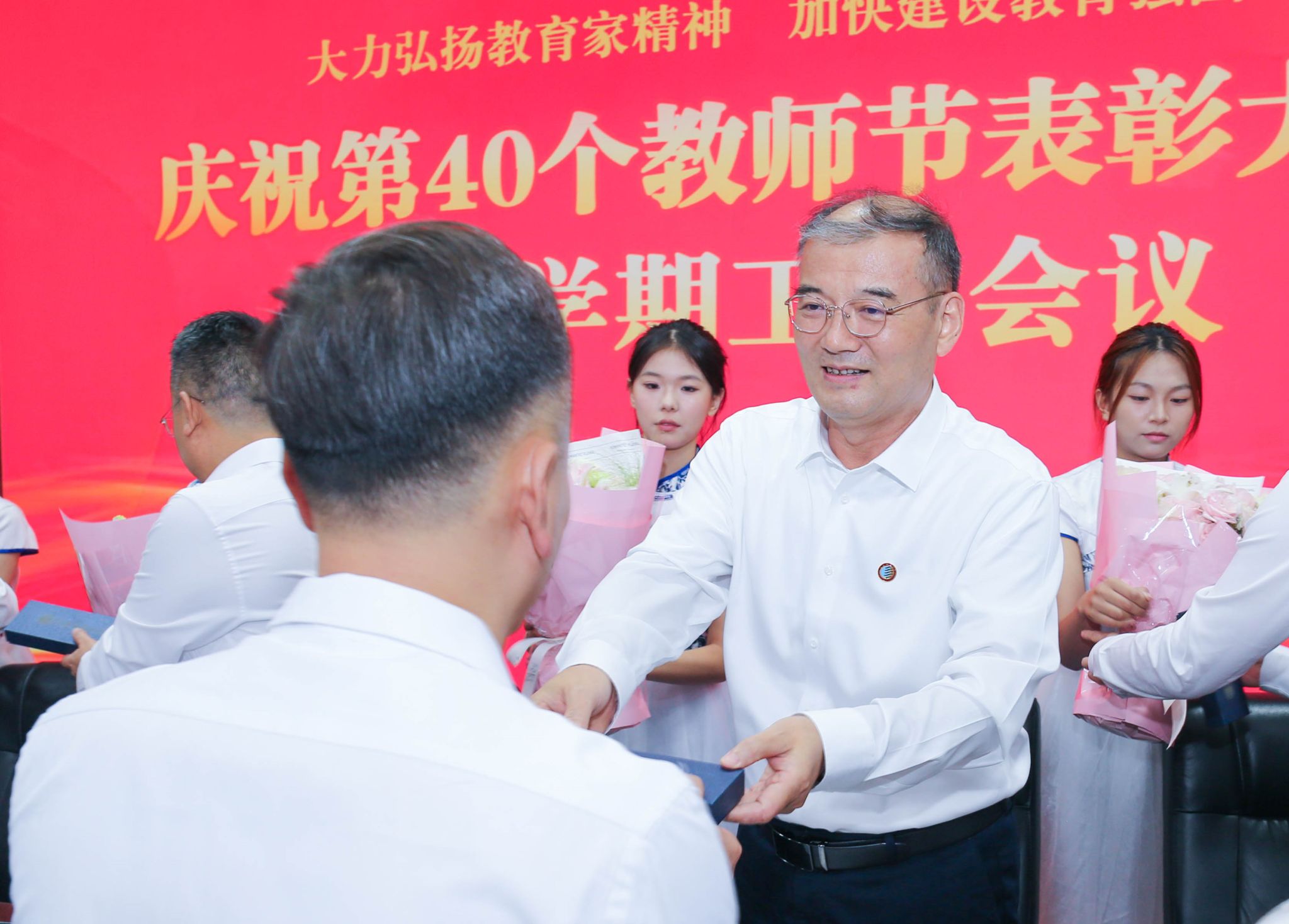 9月10日下午,我校召開慶祝第40個教師節(jié)表彰大會暨新學(xué)期工作會議,認(rèn)真學(xué)習(xí)領(lǐng)會習(xí)近平總書記關(guān)于教育的重要論述和全國教育大會精神,深入學(xué)習(xí)宣傳貫徹黨的二十屆三中全會精神,推進黨紀(jì)學(xué)習(xí)教育常態(tài)化長效化,表彰2023至2024學(xué)年做出突出貢獻的優(yōu)秀教師,對標(biāo)學(xué)校第三次黨代會安排部署,總結(jié)回顧上半年工作、安排部署下半年重點任務(wù)。校黨委書記樊建武、校長李志健出席并講話,全體在家校領(lǐng)導(dǎo)出席會議。會議由副校長蒲永平主持。