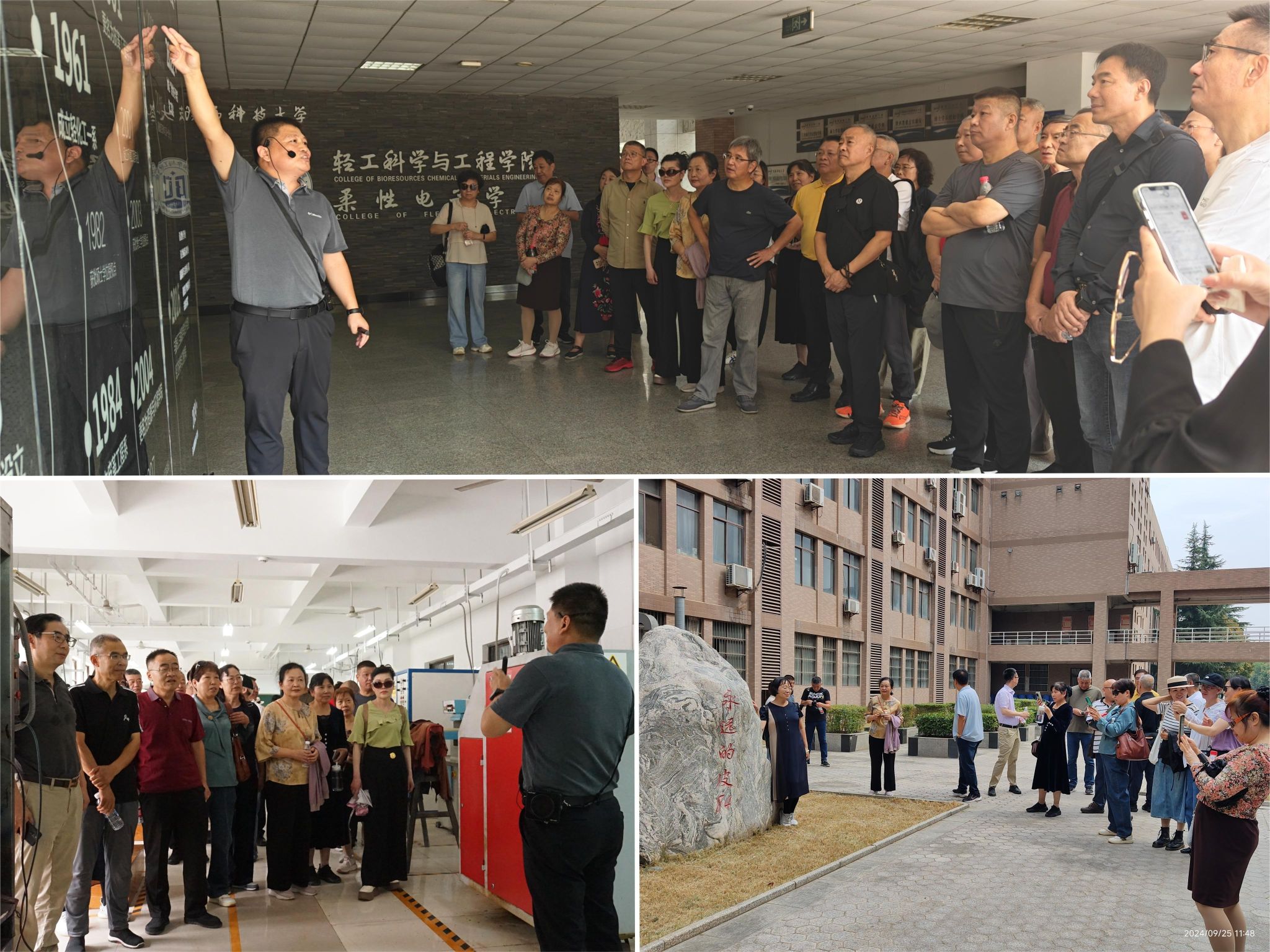 校友們參觀了中國輕工業(yè)博物館、校史館、輕工科學與工程學院(柔性電子學院)并重返咸陽校區(qū)。在博物館的皮革工業(yè)展廳,曾經的班主任王學川教授親自為校友講解,熟悉的聲音和慈祥的笑容,仿佛時光倒流,讓大家又回到了當年的課堂,重溫求學時那段難忘的時光,校友們倍感振奮,為母校的發(fā)展進程和取得的成績感到鼓舞和自豪。
