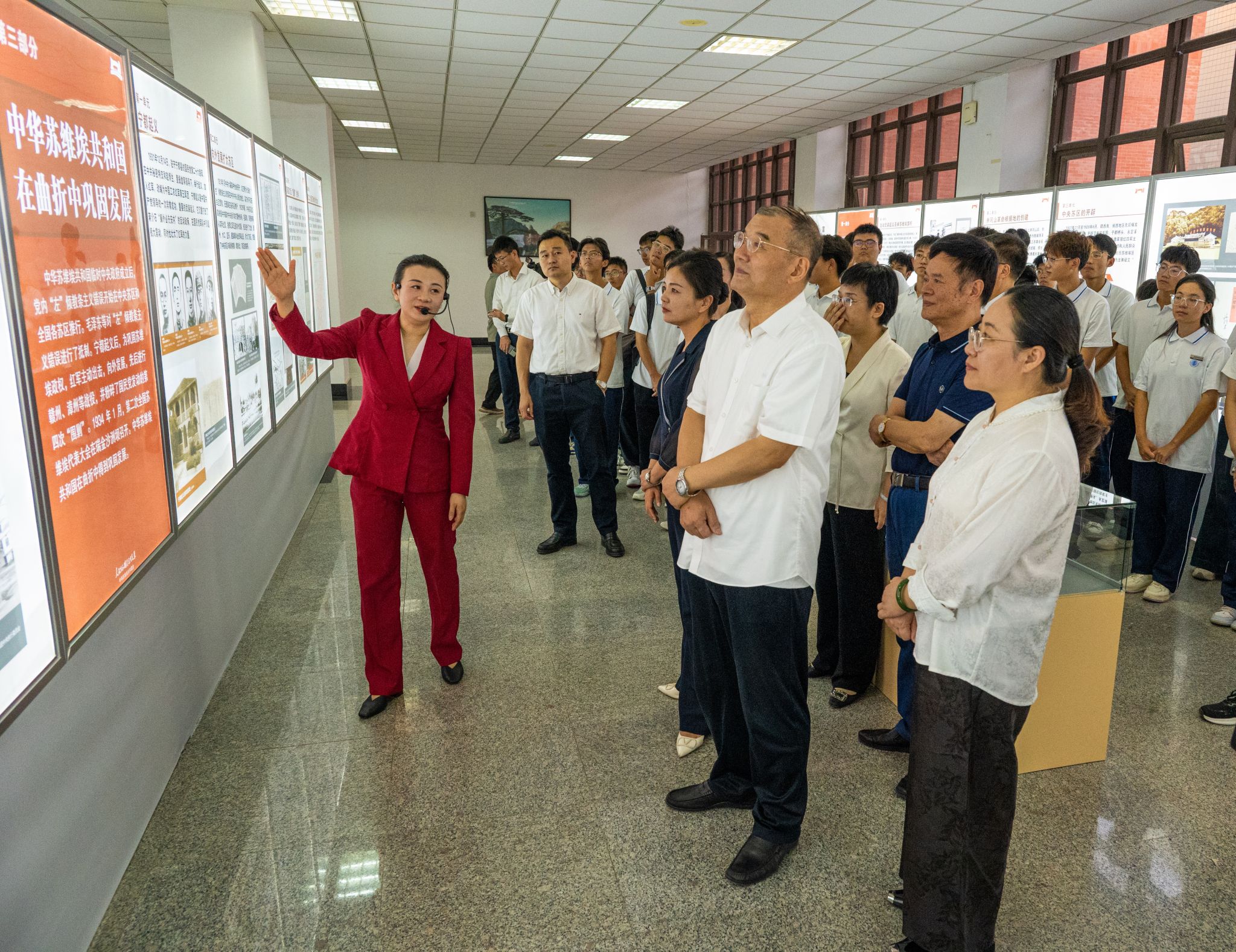 黃艷在講話中表示,瑞金是享譽(yù)中外的紅色故都、共和國(guó)搖籃、中央紅軍長(zhǎng)征出發(fā)地、人民代表大會(huì)制度初始發(fā)祥地,一大批老一輩無(wú)產(chǎn)階級(jí)革命家都在瑞金從事過(guò)偉大的革命實(shí)踐,創(chuàng)造了彪炳史冊(cè)的革命業(yè)績(jī),孕育了光照千秋的蘇區(qū)精神,留下了大量珍貴的革命舊址和文物史料。她介紹了近年來(lái)瑞金市利用紅色資源,提升城市形象,唱響紅色旅游“金招牌”和積極探索館校合作長(zhǎng)效機(jī)制,推進(jìn)紅色文化進(jìn)校園的有益經(jīng)驗(yàn)。并指出,此次把陳列展覽和情景故事講演等紅色文化送到陜西科技大學(xué),是促進(jìn)紅色資源融入高?!按笏颊n”教育體系,推動(dòng)大學(xué)生傳承紅色基因的重要舉措,希望同學(xué)們能借此更好了解革命歷史,堅(jiān)定理想信念,厚植愛(ài)國(guó)情懷。