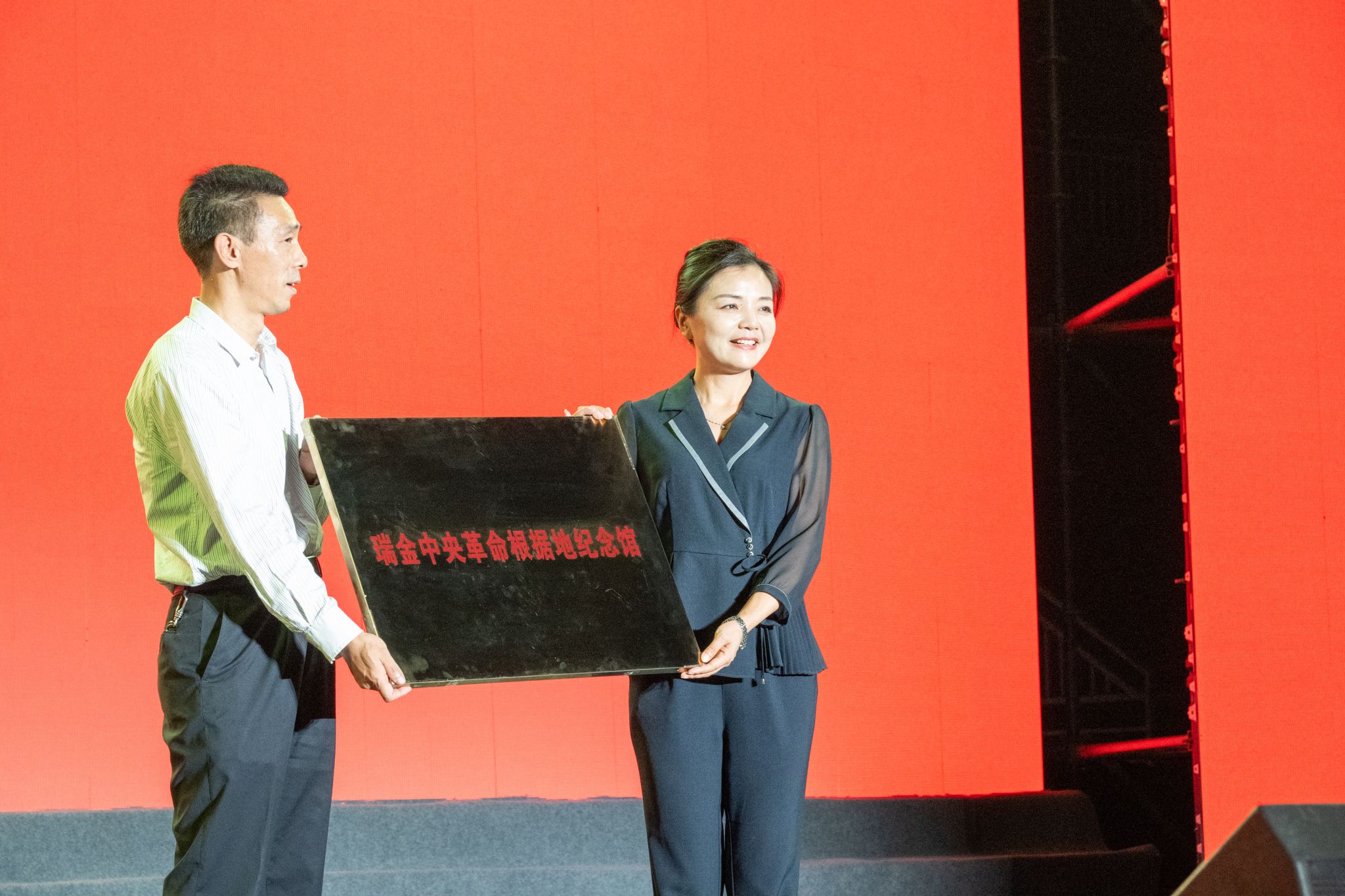 李志健為瑞金中央革命根據(jù)地紀(jì)念館頒授“陜西科技大學(xué)‘大思政課’實(shí)踐教學(xué)基地”牌匾。