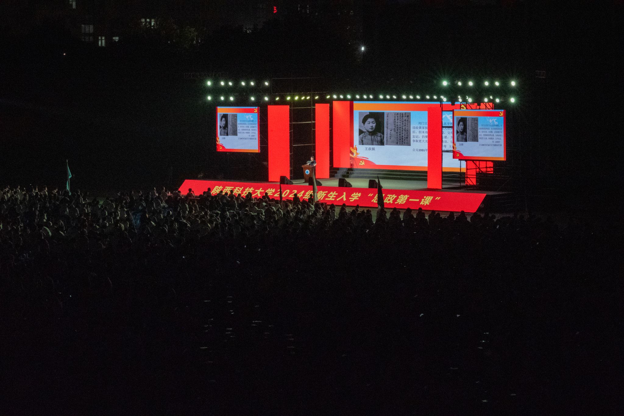 晚上19時(shí),新生入學(xué)“思政第一課”系列活動(dòng)在標(biāo)準(zhǔn)田徑場(chǎng)正式開(kāi)始?;顒?dòng)由校黨委副書(shū)記李學(xué)軍主持。