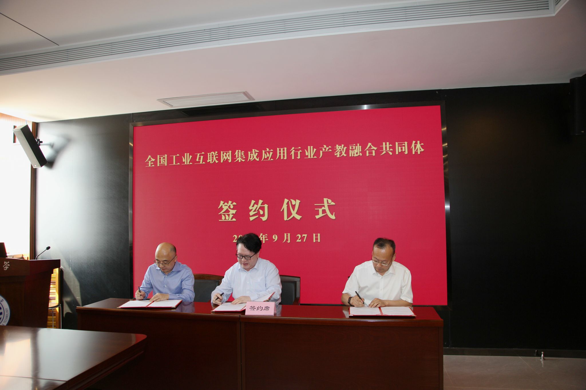 黃海峙代表學校與北京華航唯實工業(yè)軟件科技有限公司、陜西國防工業(yè)職業(yè)技術學院簽訂了全國工業(yè)互聯(lián)網(wǎng)集成應用行業(yè)產(chǎn)教融合共同體合作備忘錄。