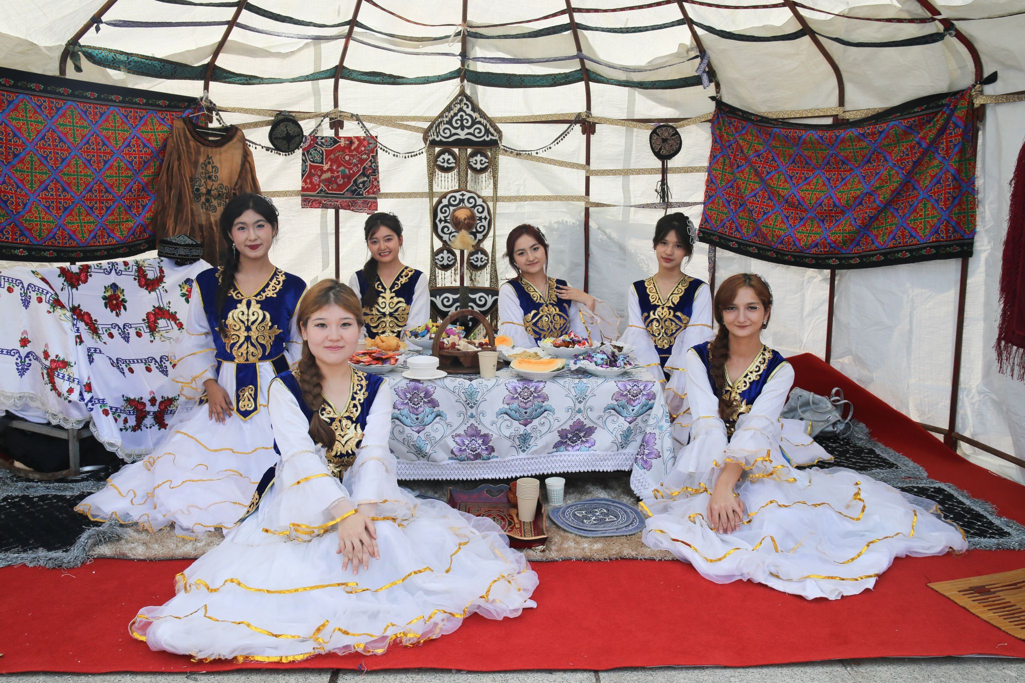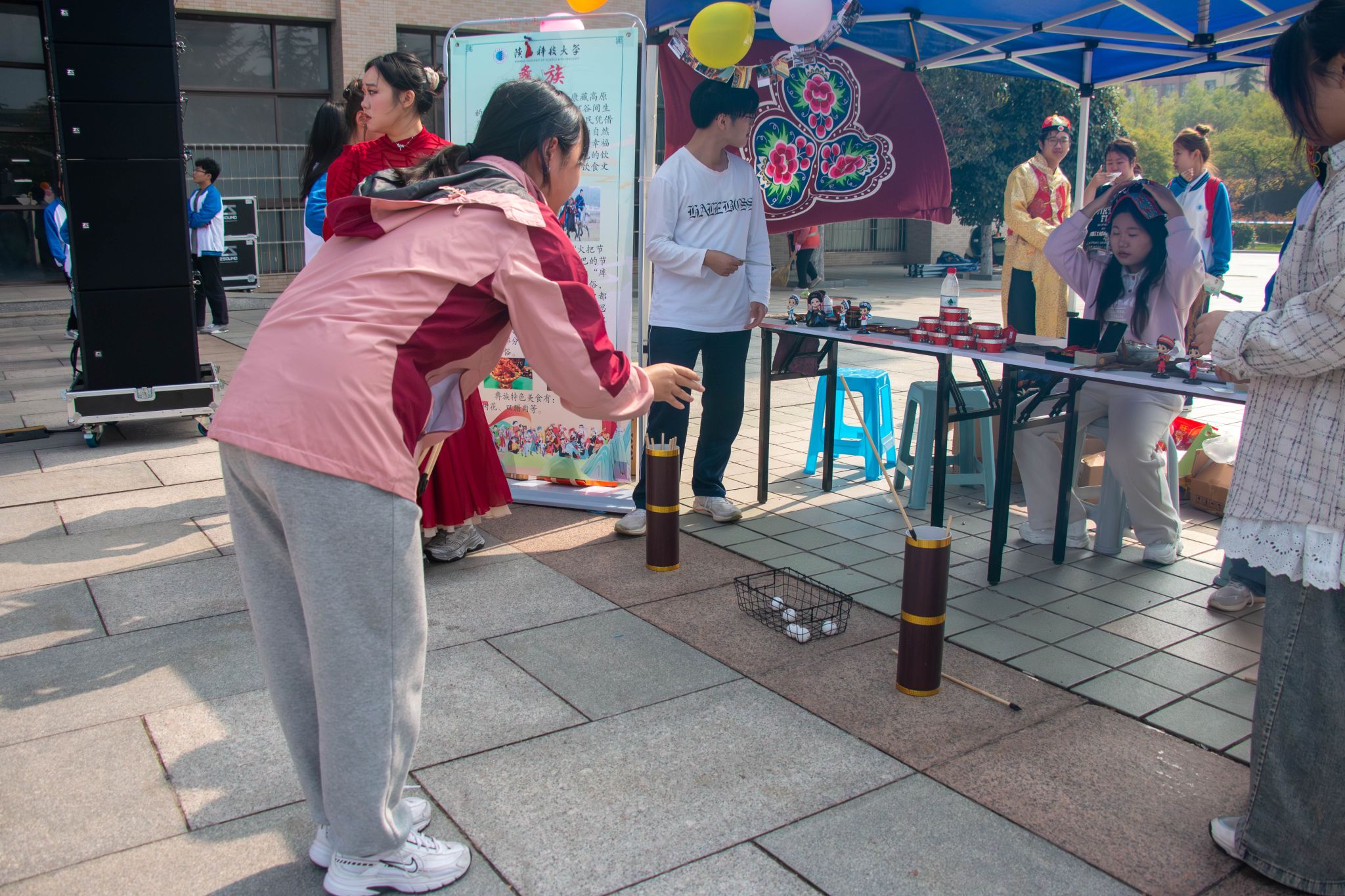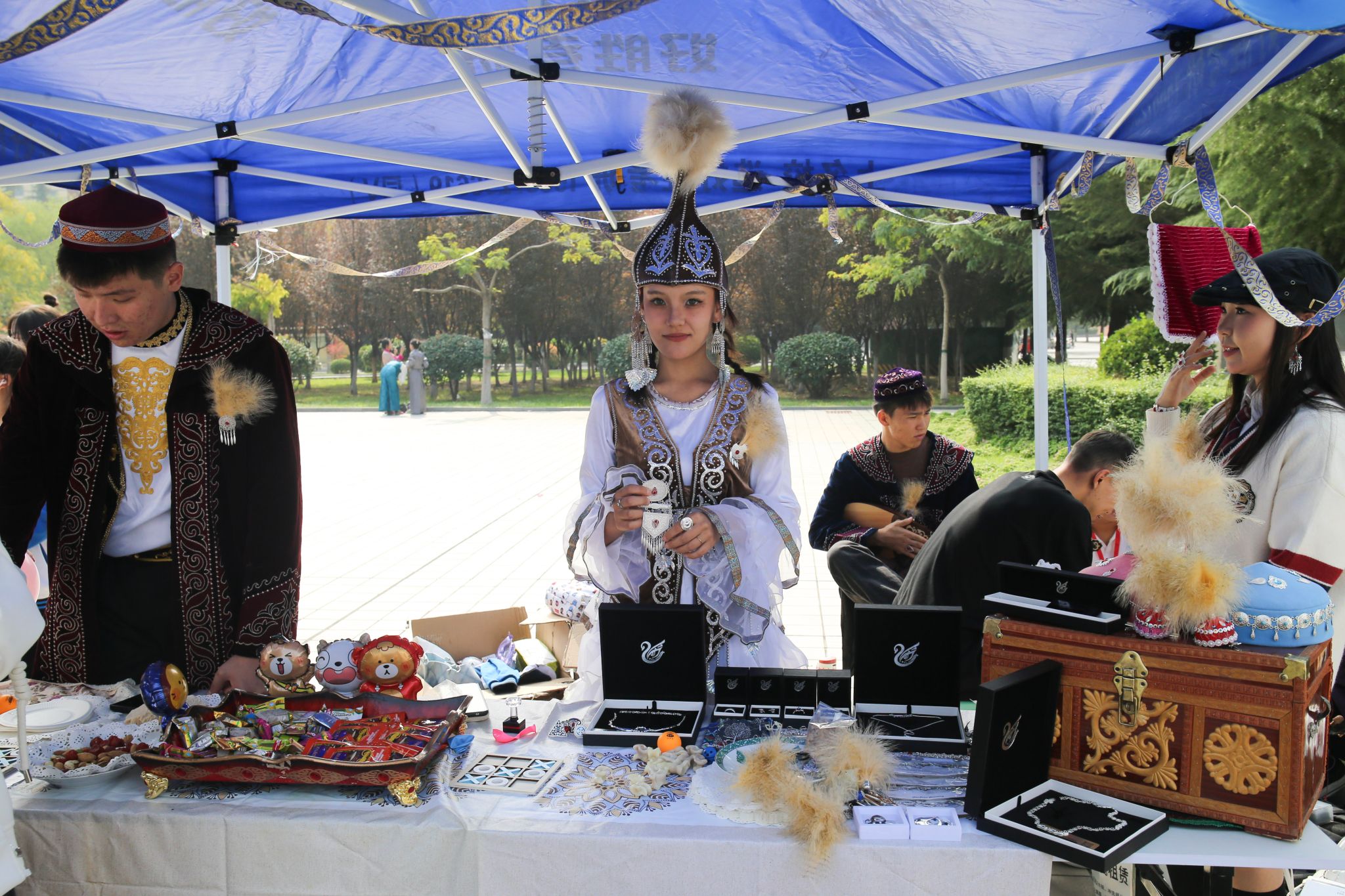 活動(dòng)現(xiàn)場(chǎng)設(shè)置了豐富多樣的民族文化展位體驗(yàn)區(qū),主要分為特色美食、風(fēng)俗習(xí)慣、民族游戲三個(gè)板塊,有維吾爾族的手抓飯、烤羊肉、馕餅,藏族的風(fēng)干牦牛肉,蒙古族的馬奶酒、鮮奶鍋巴等各色美食,還有飛花令、抓沙包、投壺、拋繡球、對(duì)歌等民族趣味游戲,呈現(xiàn)出我國(guó)各民族的民族服飾、民族音樂、民族美食、民族藝術(shù)等特色文化。值得一提的是,活動(dòng)特別設(shè)置“慶祝中華人民共和國(guó)成立75周年”和中華優(yōu)秀傳統(tǒng)文化專區(qū)展位,著力加深師生對(duì)中華民族共同體意識(shí)的理解和認(rèn)同。現(xiàn)場(chǎng)的師生們通過欣賞民族展品、品味民族美食、學(xué)習(xí)民族習(xí)俗,深刻感悟我國(guó)多元的文化魅力和各民族的獨(dú)特風(fēng)情,切身體會(huì)到中華民族大家庭的溫暖與和諧。