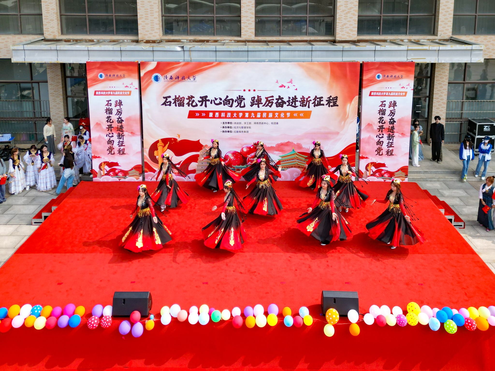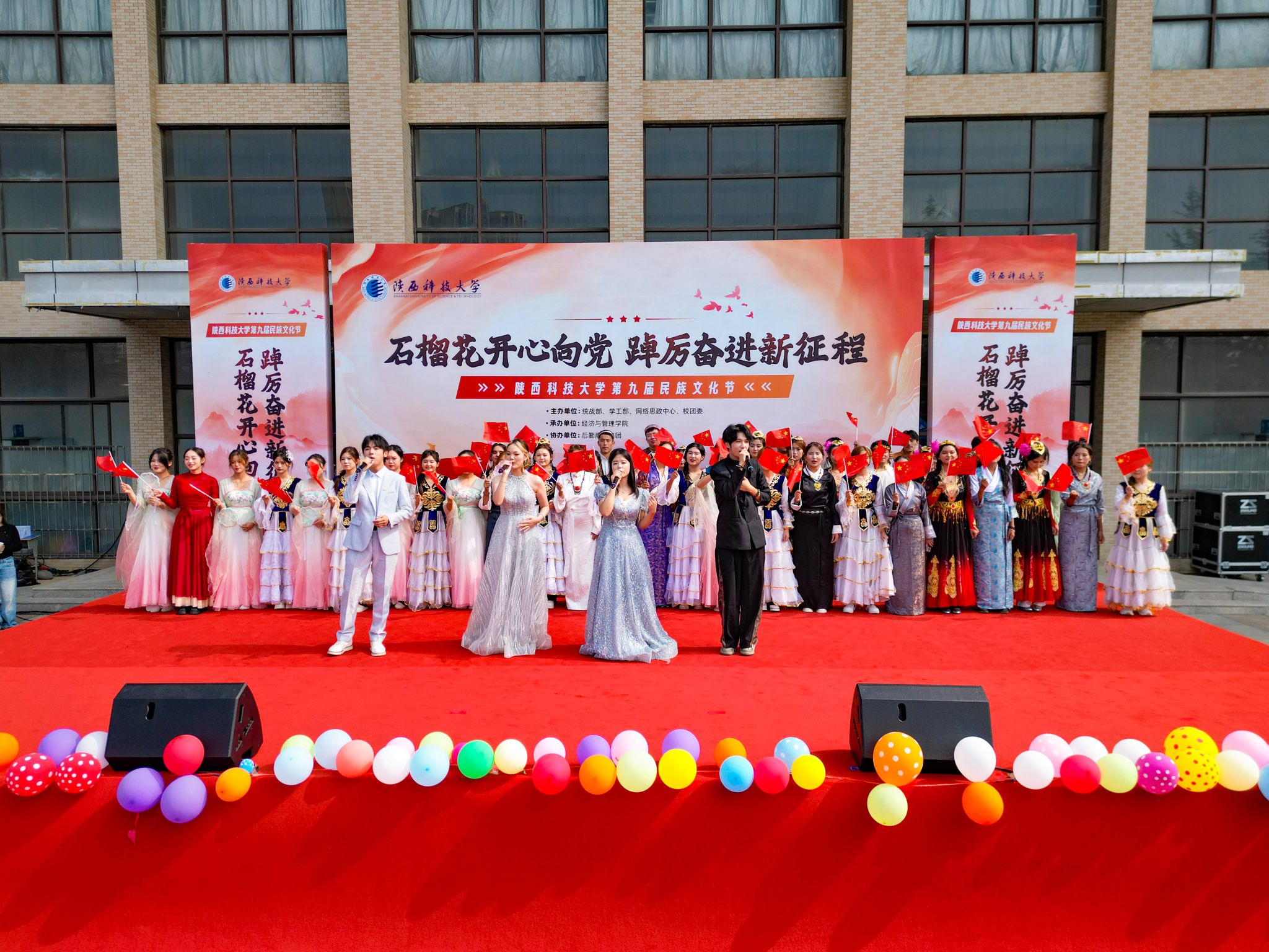 本屆民族文化節(jié)以“石榴花開心向黨,踔厲奮進(jìn)新征程”為主題,以鑄牢中華民族共同體意識(shí)為主線,通過民族文化展位體驗(yàn)和文藝匯演,讓師生在民族特色美食中感受“舌尖上的中國(guó)”,在民族文藝展演中體驗(yàn)文化盛宴,在文化的交融碰撞中感受昂揚(yáng)向上的中華民族精神和悠久燦爛的中華優(yōu)秀傳統(tǒng)文化。
