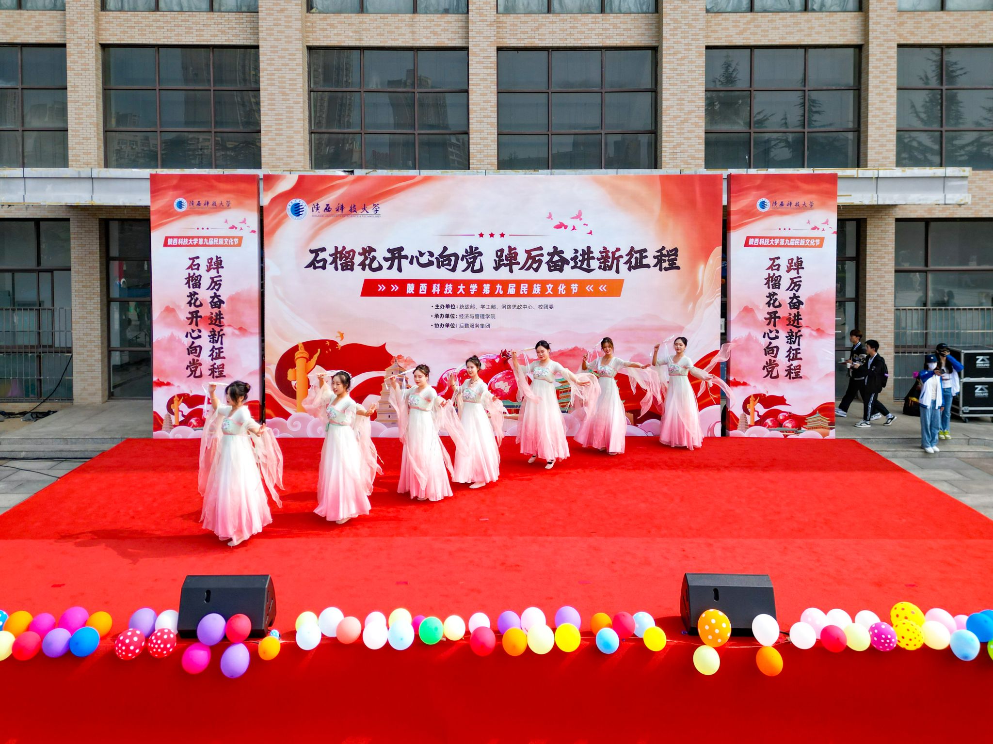 為進(jìn)一步貫徹落實(shí)習(xí)近平總書記關(guān)于做好新時(shí)代黨的統(tǒng)一戰(zhàn)線工作的重要思想和在全國(guó)民族團(tuán)結(jié)進(jìn)步表彰大會(huì)上的重要講話精神,有形有感有效推進(jìn)鑄牢中華民族共同體意識(shí)教育走深走實(shí),10月18日,由統(tǒng)戰(zhàn)部、學(xué)工部、網(wǎng)絡(luò)思政中心、校團(tuán)委主辦,后勤服務(wù)集團(tuán)協(xié)辦,經(jīng)濟(jì)與管理學(xué)院承辦的學(xué)校第九屆民族文化節(jié)在教學(xué)區(qū)文體館前正式拉開帷幕。校黨委書記樊建武,校黨委副書記王道安、李學(xué)軍,相關(guān)部門負(fù)責(zé)人與千余名師生共同參加此次活動(dòng)。