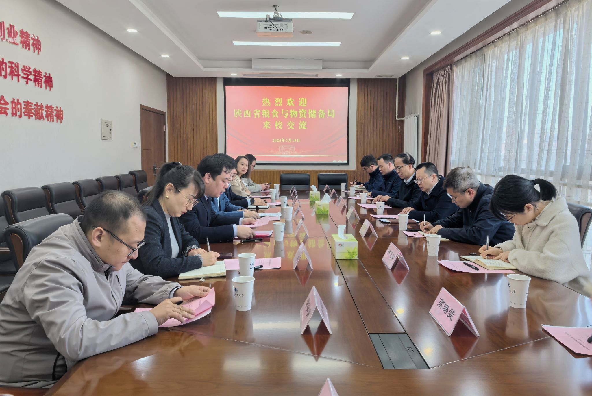3月19日下午,陜西省糧食和物資儲備局黨組成員、副局長陳輝一行來校調(diào)研交流,就進(jìn)一步深化合作進(jìn)行座談。校長黃劍鋒會見陳輝一行。副校長陸趙情出席座談會,會議由食品科學(xué)與工程學(xué)院黨委書記張凱凱主持。