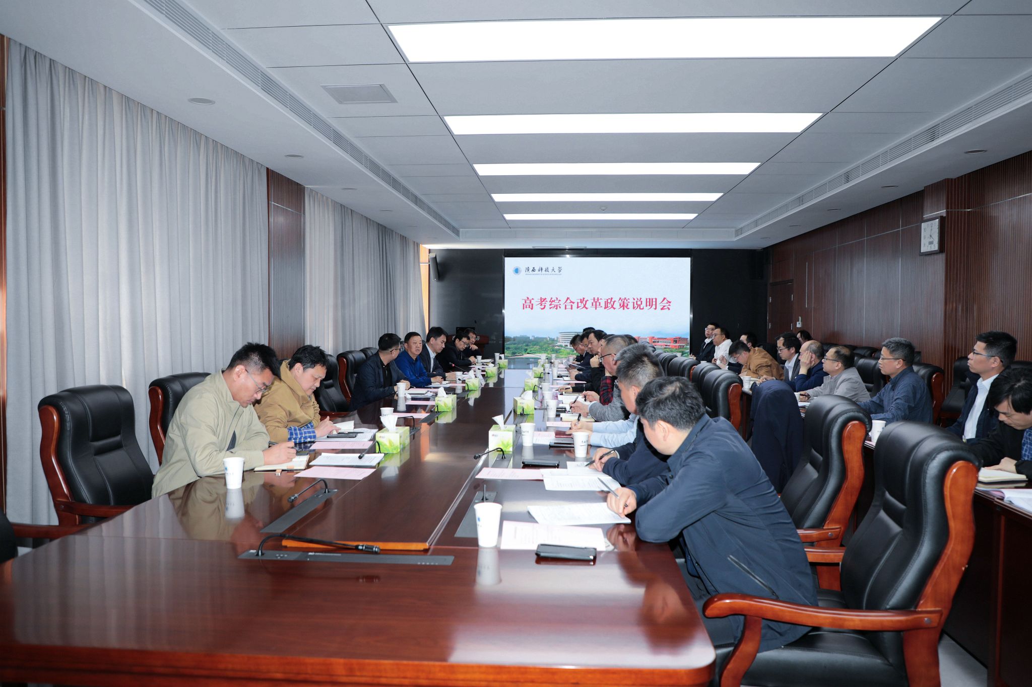 招生辦匯報2024年學(xué)校本科招生工作情況,并對高考綜合改革政策作分析說明,提出后續(xù)招生工作的初步思路。