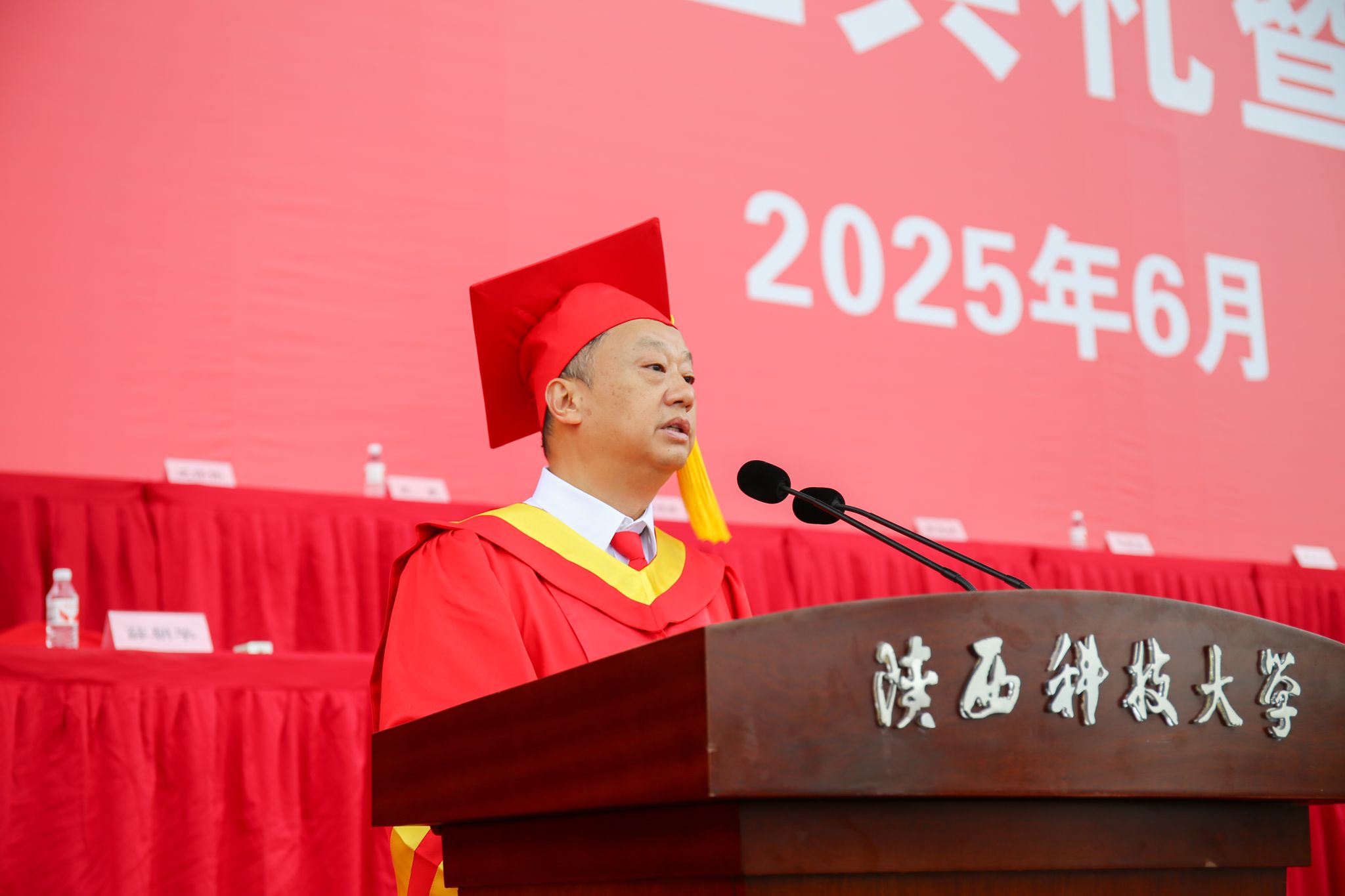 未央朝雨邑輕塵,校園青青梧桐新。在這甘露滋潤的早晨,今天,我們在這里舉行陜西科技大學(xué)2025屆學(xué)生畢業(yè)典禮暨學(xué)位授予儀式,共同見證4547名本科生和1670名研究生圓滿完成學(xué)業(yè)。首先,我代表學(xué)校,向同學(xué)們表示熱烈祝賀!向各位家長和老師致以衷心感謝!