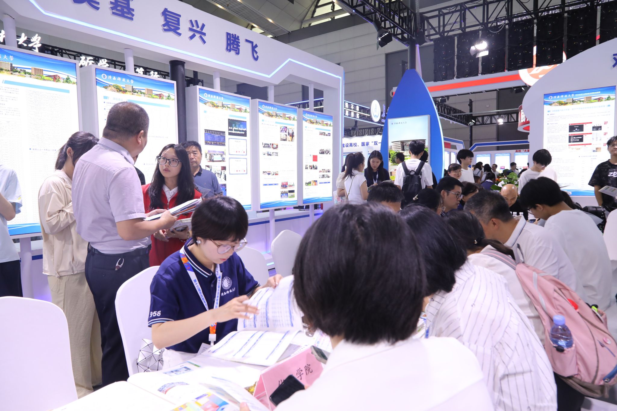 本屆博覽會(huì)以“AI賦能教育發(fā)展,推動(dòng)教育強(qiáng)省建設(shè)”為主題。學(xué)校展區(qū)緊扣主題,通過(guò)展板、視頻、實(shí)物和互動(dòng)講解等方式,全面呈現(xiàn)了學(xué)校專業(yè)特色、科研創(chuàng)新實(shí)力,吸引了眾多考生、家長(zhǎng)駐足咨詢。