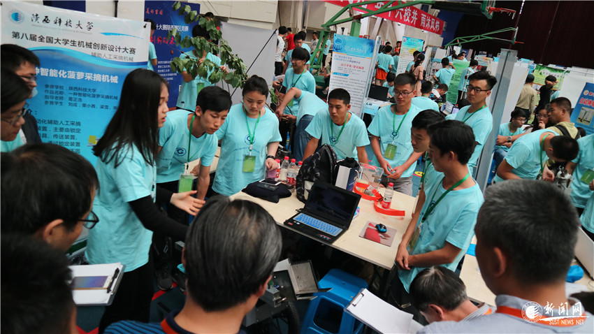 評委對我校作品“一種智能化菠蘿采摘機械”進行現(xiàn)場問辯