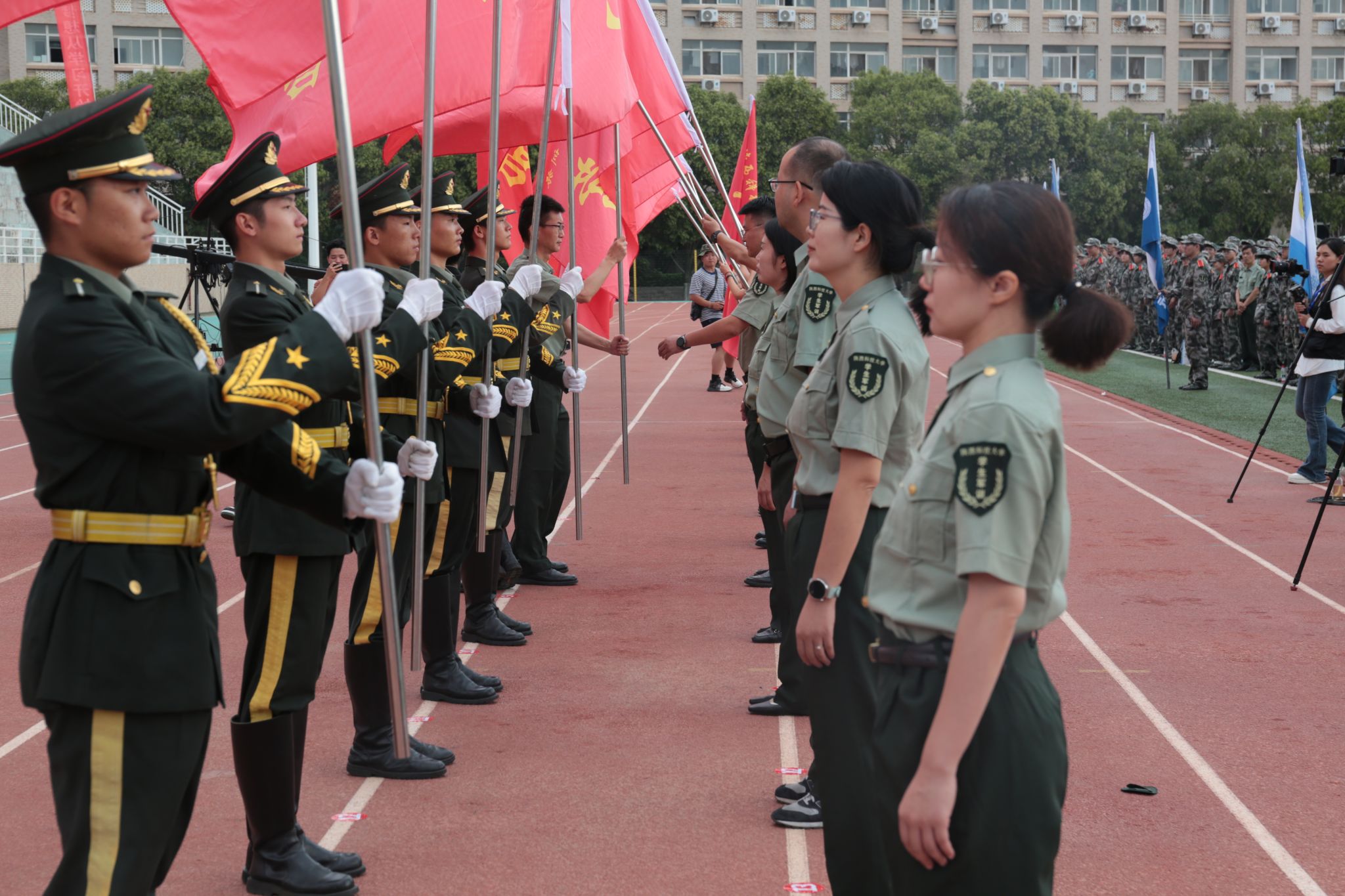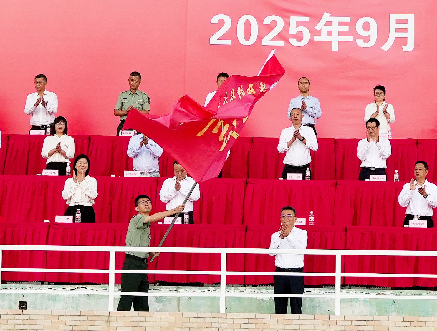 為充分發(fā)揮軍訓(xùn)育人成效,學(xué)校成立2025年本科新生軍訓(xùn)旅,樊建武向2025級軍訓(xùn)旅頒授軍訓(xùn)旅旅旗,軍訓(xùn)旅政委向各軍訓(xùn)營授營旗。