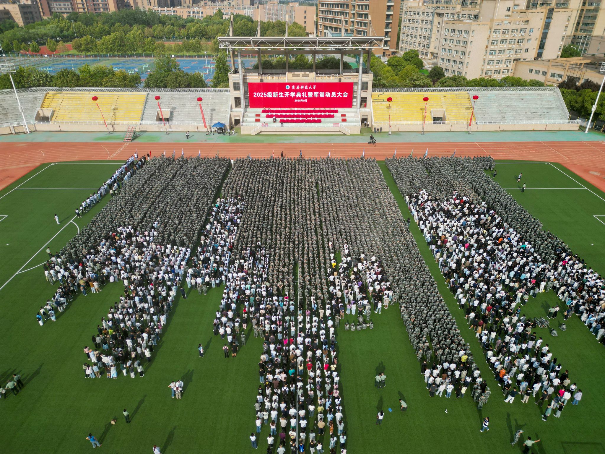 9月2日上午,陜西科技大學(xué)2025級新生開學(xué)典禮暨軍訓(xùn)動員大會在標(biāo)準田徑場舉行。黨委書記樊建武,校長黃劍鋒,黨委副書記王道安,黨委副書記、紀委書記、監(jiān)察專員羅瑩,副校長黃海峙、馬力及各部門、各學(xué)院主要負責(zé)人、師生代表出席典禮。樊建武為2025年軍訓(xùn)旅頒授軍訓(xùn)旅旅旗,黃劍鋒發(fā)表講話。副校長費貴強主持典禮。