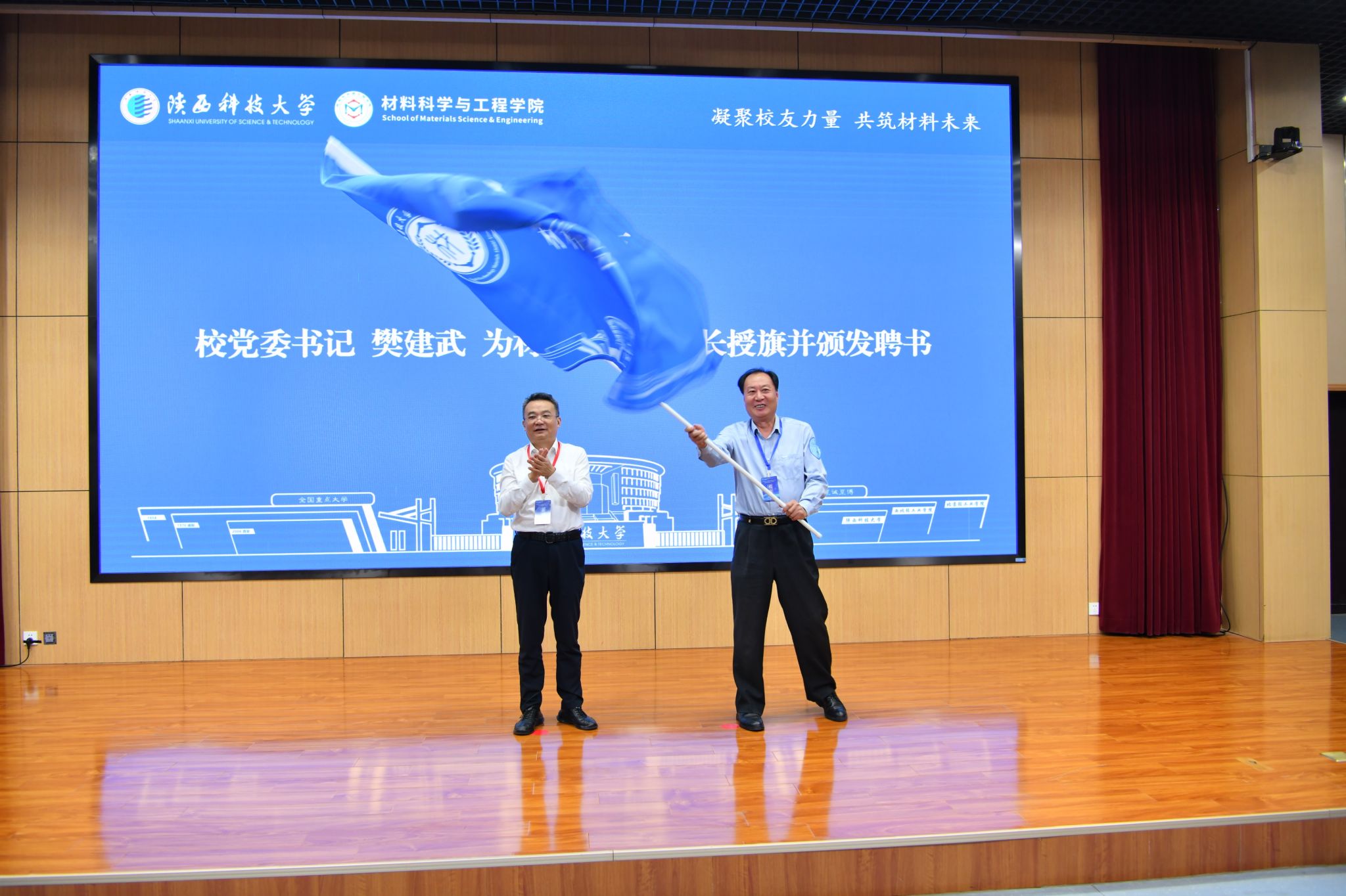 9月13日上午,陜西科技大學材料校友會/理事會成立大會暨第一次校友代表大會在學校圖書館學術報告廳舉行。黨委書記樊建武為首屆會長授會旗并頒發(fā)聘書,校長、校友總會會長黃劍鋒出席大會并講話,副校長費貴強為捐贈企業(yè)代表頒發(fā)捐贈證書。材料科學與工程學院院長楊海波主持大會。