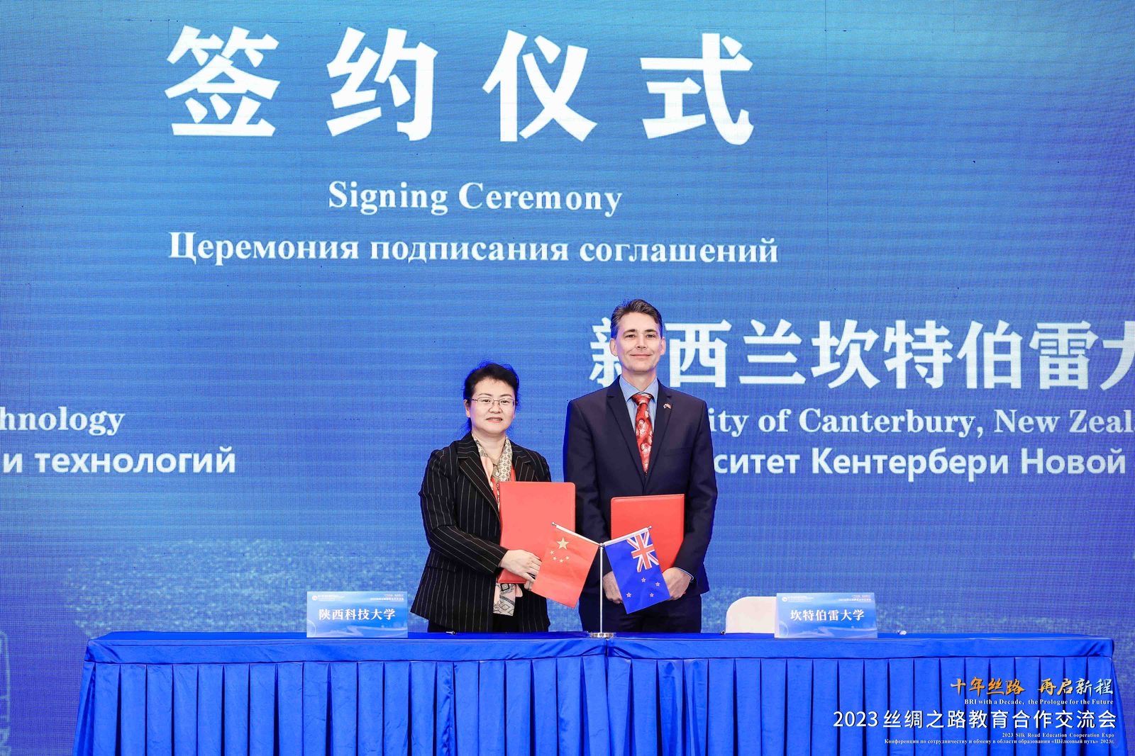 11月17日,2023絲綢之路教育合作交流會在西安舉行,副校長蒲永平出席會議。蒲永平、我校國際合作與交流處處長張素風(fēng)在會上分別代表學(xué)校與烏茲別克斯坦國際食品與工程學(xué)院、新西蘭惠靈頓維多利亞大學(xué)、新西蘭坎特伯雷大學(xué)簽署戰(zhàn)略合作協(xié)議。