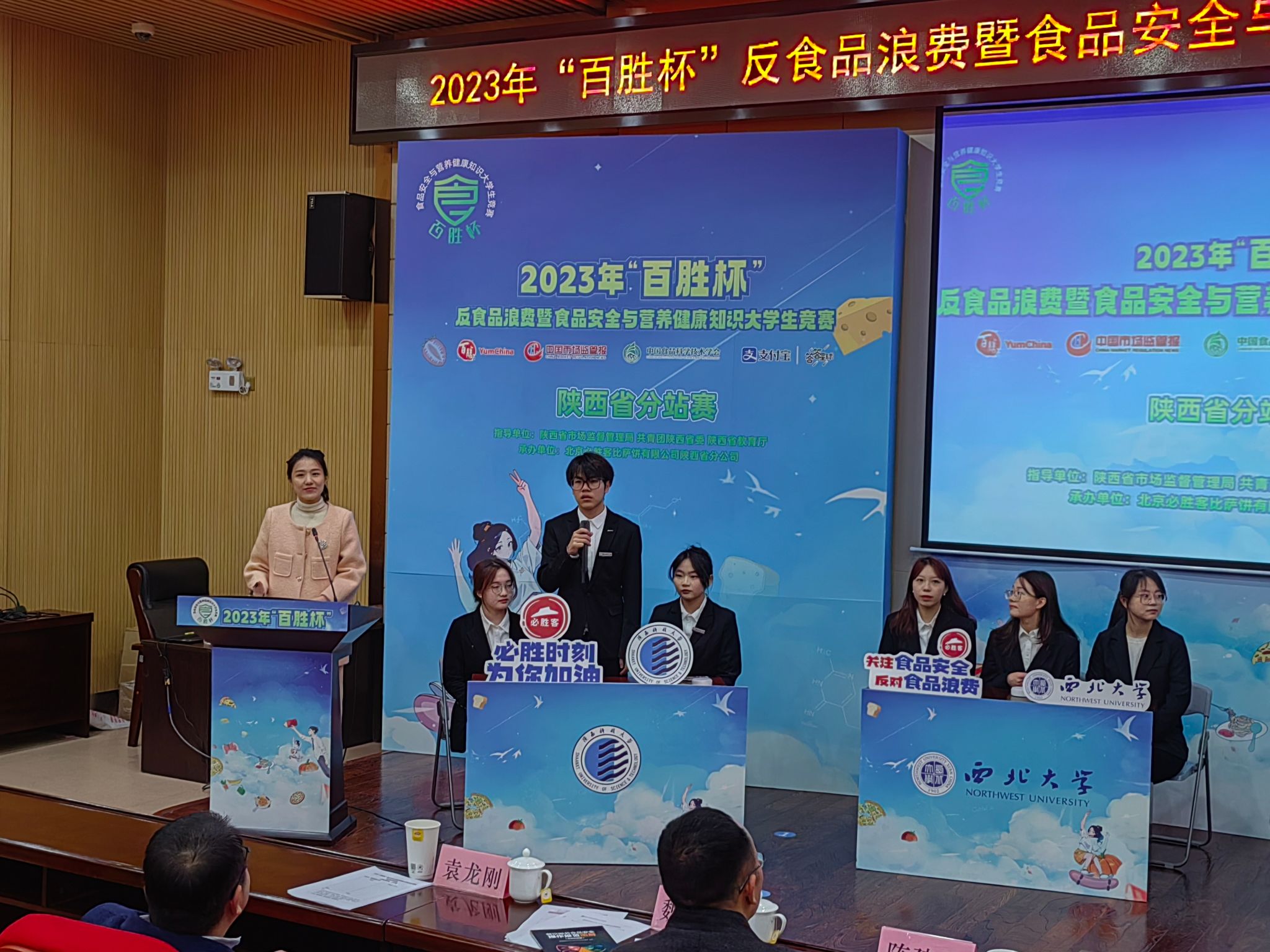 11月24日,由陜西省市場監(jiān)管局、共青團陜西省委、省教育廳聯(lián)合開展的“百勝杯”反食品浪費暨食品安全與營養(yǎng)健康知識大學生競賽陜西省分站賽決賽落下帷幕。陜西省市場監(jiān)管局副局長劉育民、共青團陜西省委副書記劉洋、陜西省教育廳體衛(wèi)藝處處長韓燁和來自西北大學、陜西師范大學、長安大學、陜西科技大學的4所高校的志愿者代表、學生代表共計200余人出席此次活動。我校參賽隊伍榮獲本次比賽陜西省分站賽第二名。