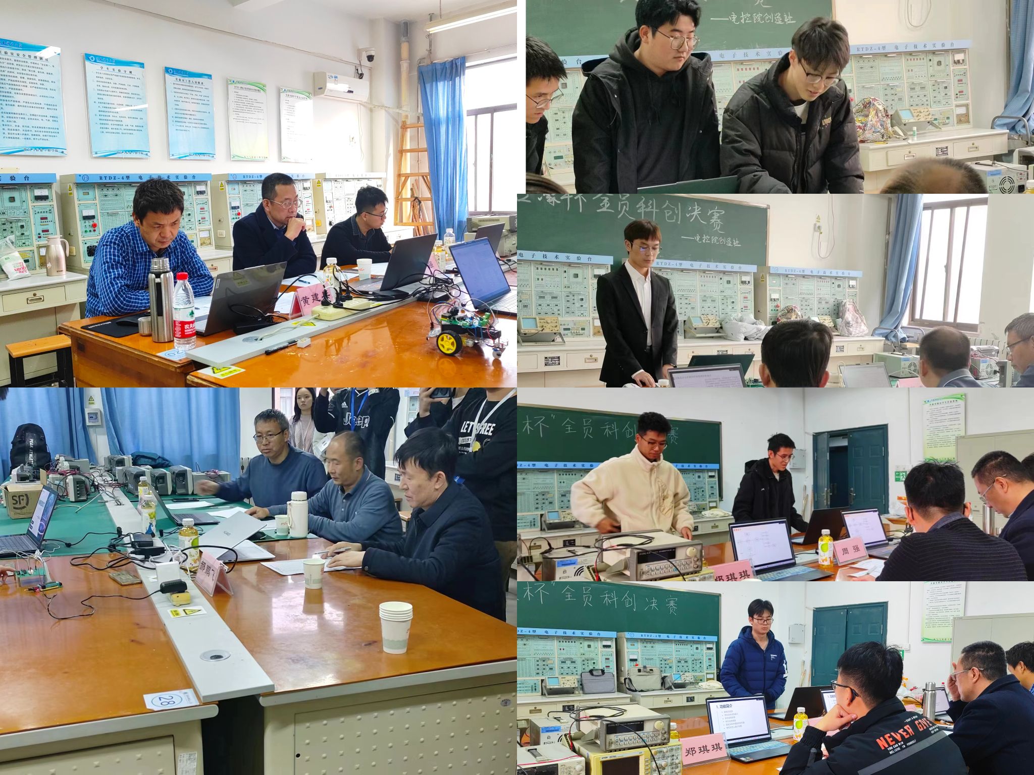 為做好創(chuàng)新人才選拔工作,電控學(xué)院副院長周強(qiáng),創(chuàng)造社指導(dǎo)老師鄭琪琪,科創(chuàng)導(dǎo)師黃建兵、蔡陳赟、郝鵬飛、李英春六位老師受邀出席決賽并擔(dān)任評(píng)委,對(duì)進(jìn)入決賽的33件作品開展全面的考核驗(yàn)收。決賽通過答辯陳述、現(xiàn)場功能演示、視頻輔助展示、問辯等多個(gè)環(huán)節(jié),從不同專業(yè)角度進(jìn)行考核,確保作品功能全部實(shí)現(xiàn)、團(tuán)隊(duì)成員充分參與、評(píng)選結(jié)果公平公正,現(xiàn)場氛圍十分熱烈。