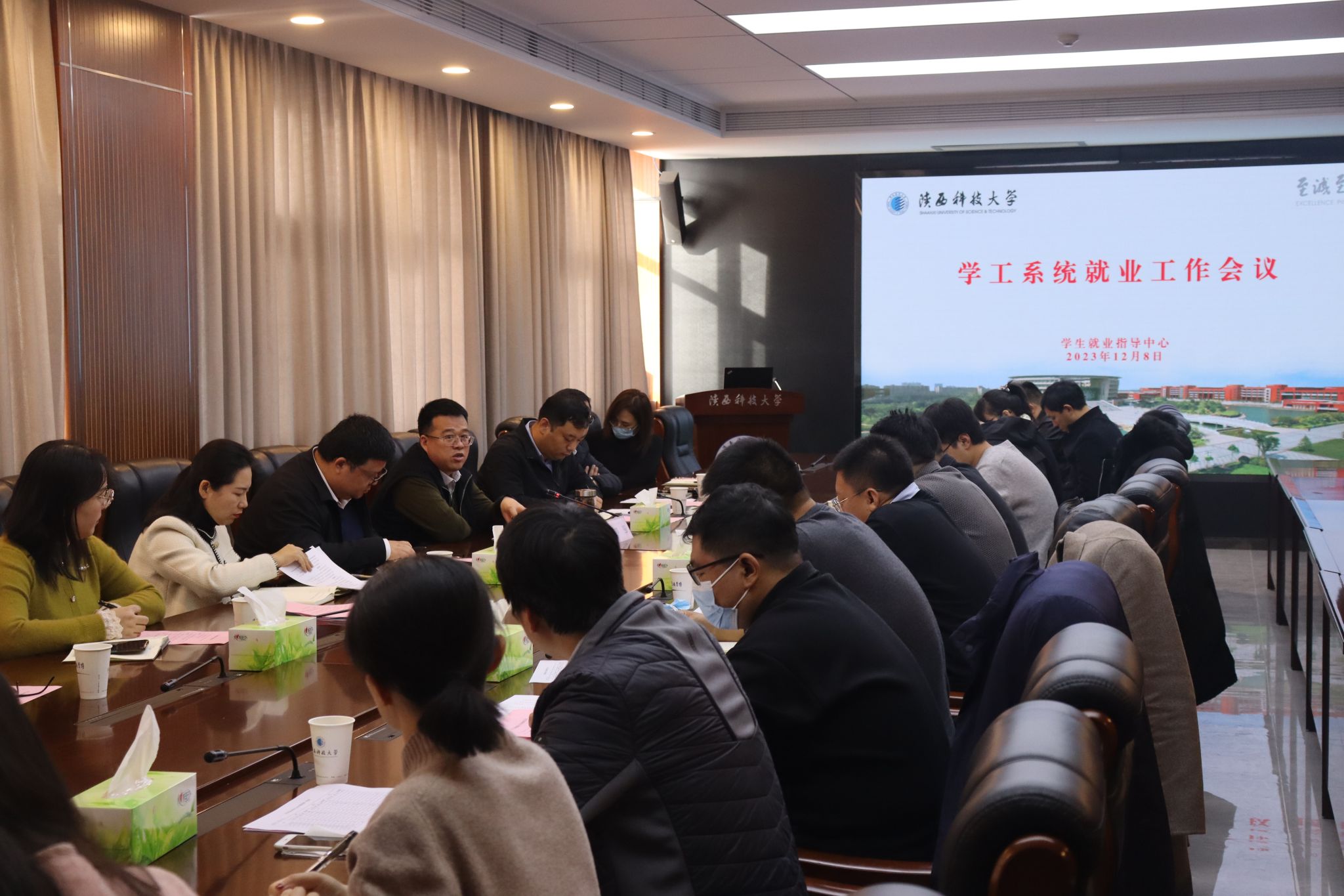 為深入貫徹落實2024屆全國普通高校畢業(yè)生就業(yè)創(chuàng)業(yè)工作視頻會議精神,準(zhǔn)確把握當(dāng)前畢業(yè)生就業(yè)工作面臨的形勢,多措并舉促進(jìn)畢業(yè)生更加充分更高質(zhì)量就業(yè),12月8日上午,校黨委副書記郭強主持召開學(xué)工系統(tǒng)就業(yè)工作會議。學(xué)工部、網(wǎng)絡(luò)思想政治工作中心、校團委班子成員及各學(xué)院學(xué)生工作負(fù)責(zé)人參加會議。