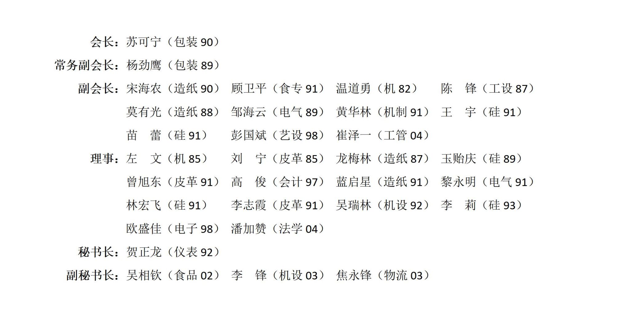 附:陜西科技大學廣西校友會領(lǐng)導組織機構(gòu)名單