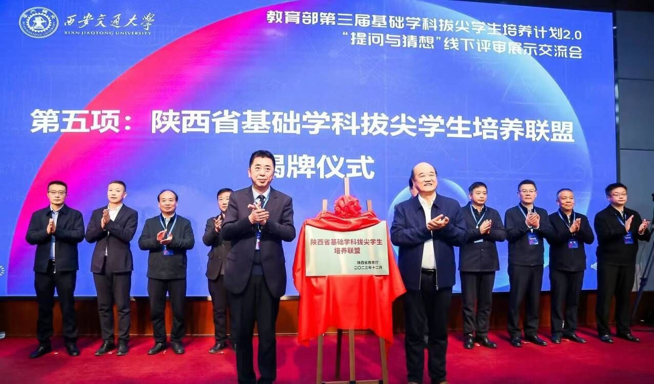 作為教育部第三屆基礎(chǔ)學(xué)科拔尖學(xué)生培養(yǎng)計(jì)劃2.0“提問(wèn)與猜想”線下評(píng)審展示交流會(huì)的活動(dòng)之一,該聯(lián)盟由西安交通大學(xué)發(fā)起,經(jīng)陜西省教育廳批準(zhǔn),西北工業(yè)大學(xué)、西北農(nóng)林大學(xué)、陜西科技大學(xué)等10所陜西省內(nèi)高校成立的陜西省基礎(chǔ)學(xué)科拔尖學(xué)生培養(yǎng)聯(lián)盟舉行了揭牌儀式。教育部高等教育司理工處負(fù)責(zé)人、陜西省教育廳相關(guān)處室負(fù)責(zé)人、陜西省基礎(chǔ)學(xué)科拔尖學(xué)生培養(yǎng)聯(lián)盟成員高校相關(guān)負(fù)責(zé)人及全國(guó)各地拔尖計(jì)劃2.0入選高校師生代表參加了會(huì)議。