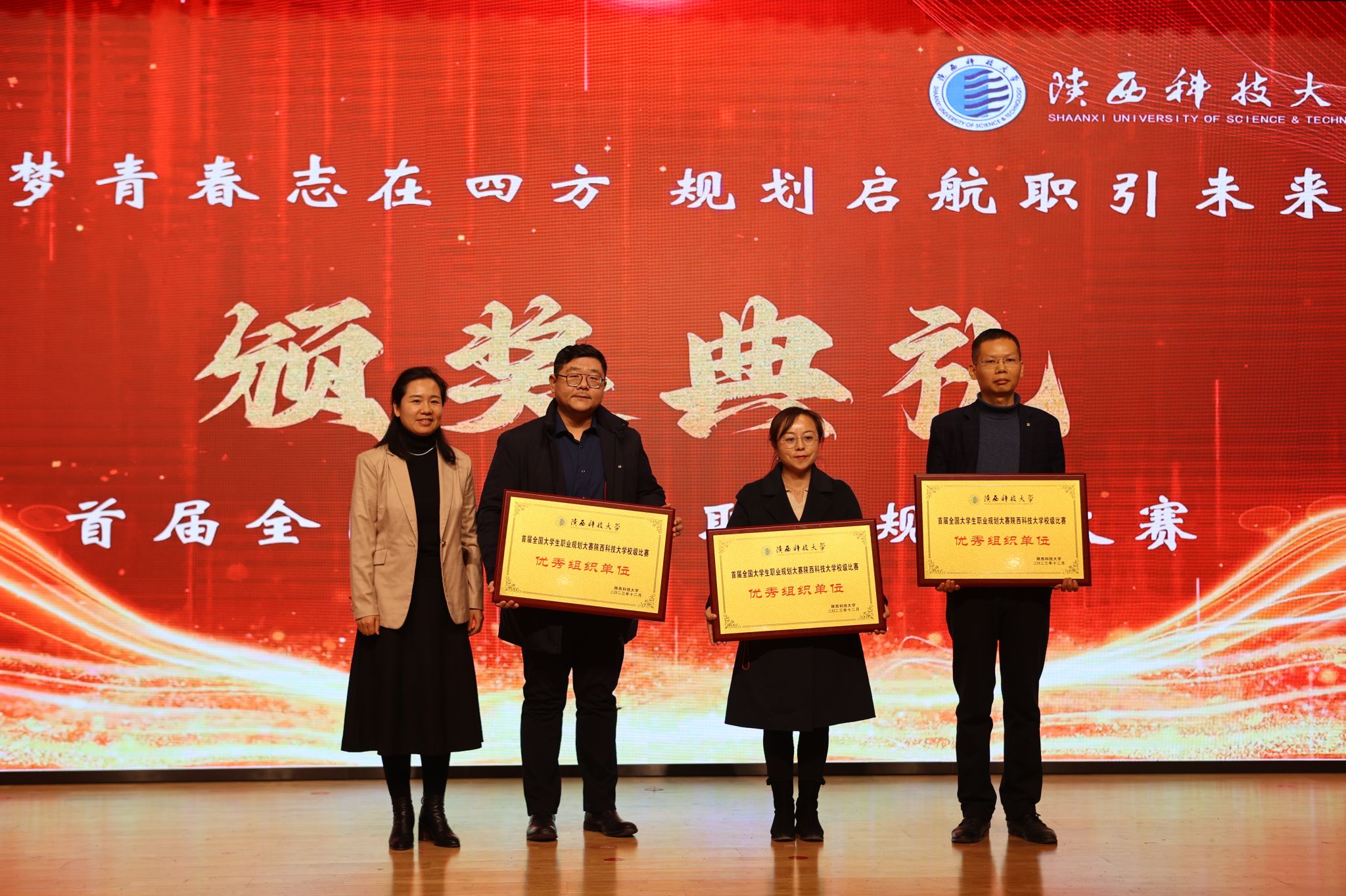 為進(jìn)一步增強(qiáng)學(xué)生生涯規(guī)劃意識(shí),科學(xué)規(guī)劃大學(xué)生活,提早做好就業(yè)準(zhǔn)備,促進(jìn)畢業(yè)生高質(zhì)量充分就業(yè),根據(jù)《教育部關(guān)于舉辦首屆全國(guó)大學(xué)生職業(yè)規(guī)劃大賽的通知》(教學(xué)函〔2023〕1號(hào)),12月15日,以“筑夢(mèng)青春志在四方,規(guī)劃啟航職引未來”為主題的全國(guó)首屆大學(xué)生職業(yè)規(guī)劃大賽陜西科技大學(xué)校級(jí)選拔賽在人文樓小劇場(chǎng)成功舉辦。學(xué)工部、設(shè)計(jì)與藝術(shù)學(xué)院(絲路文化與傳播學(xué)院)、電氣與控制工程學(xué)院相關(guān)負(fù)責(zé)人以及各學(xué)院學(xué)生工作負(fù)責(zé)人、選手指導(dǎo)老師共同參加了頒獎(jiǎng)典禮。