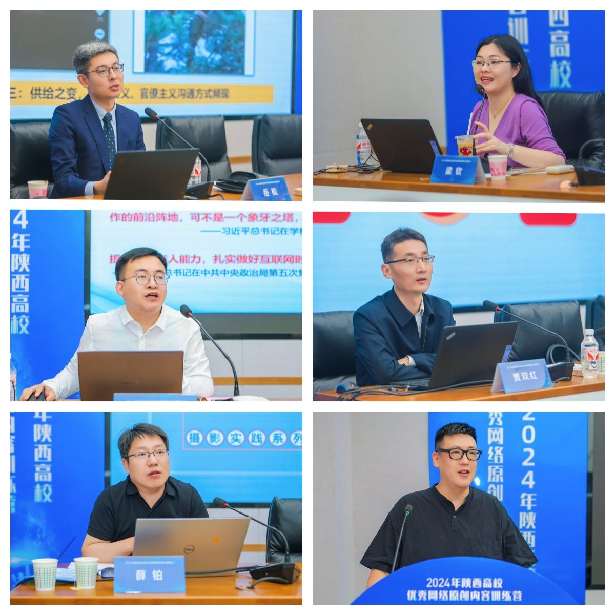 訓(xùn)練營采取“報告交流+集中創(chuàng)作”的形式創(chuàng)新開展,共設(shè)置有六場專題講座與一次集中創(chuàng)作。全國網(wǎng)絡(luò)教育名師、山東理工大學(xué)教授岳松,全國網(wǎng)絡(luò)教育名師、上海交大網(wǎng)宣辦副主任梁欽,中國大學(xué)生在線新媒體主編、中教華影首席編輯張洪濤,西安市委宣傳部理論處處長賈雙紅,陜西省委宣傳部陜西畫報社(陜西新聞圖片社)圖片總監(jiān)、國家高級攝影師薛鉑,“知乎”陜西運營中心運營負責(zé)人龔繼武分別圍繞優(yōu)秀網(wǎng)絡(luò)文化作品選題分析、創(chuàng)作邏輯、呈現(xiàn)技巧、技術(shù)策略等方面開展了專題授課和分享交流。全體參訓(xùn)學(xué)員參照選題指南、結(jié)合培訓(xùn)所獲,集中創(chuàng)作了一批原創(chuàng)網(wǎng)絡(luò)文化作品。與會學(xué)員還在中國輕工業(yè)博物館、我校承建的陜西高校網(wǎng)絡(luò)思想政治工作中心(陜西省高等學(xué)校思想政治教育研究會秘書處)進行了現(xiàn)場研學(xué)。