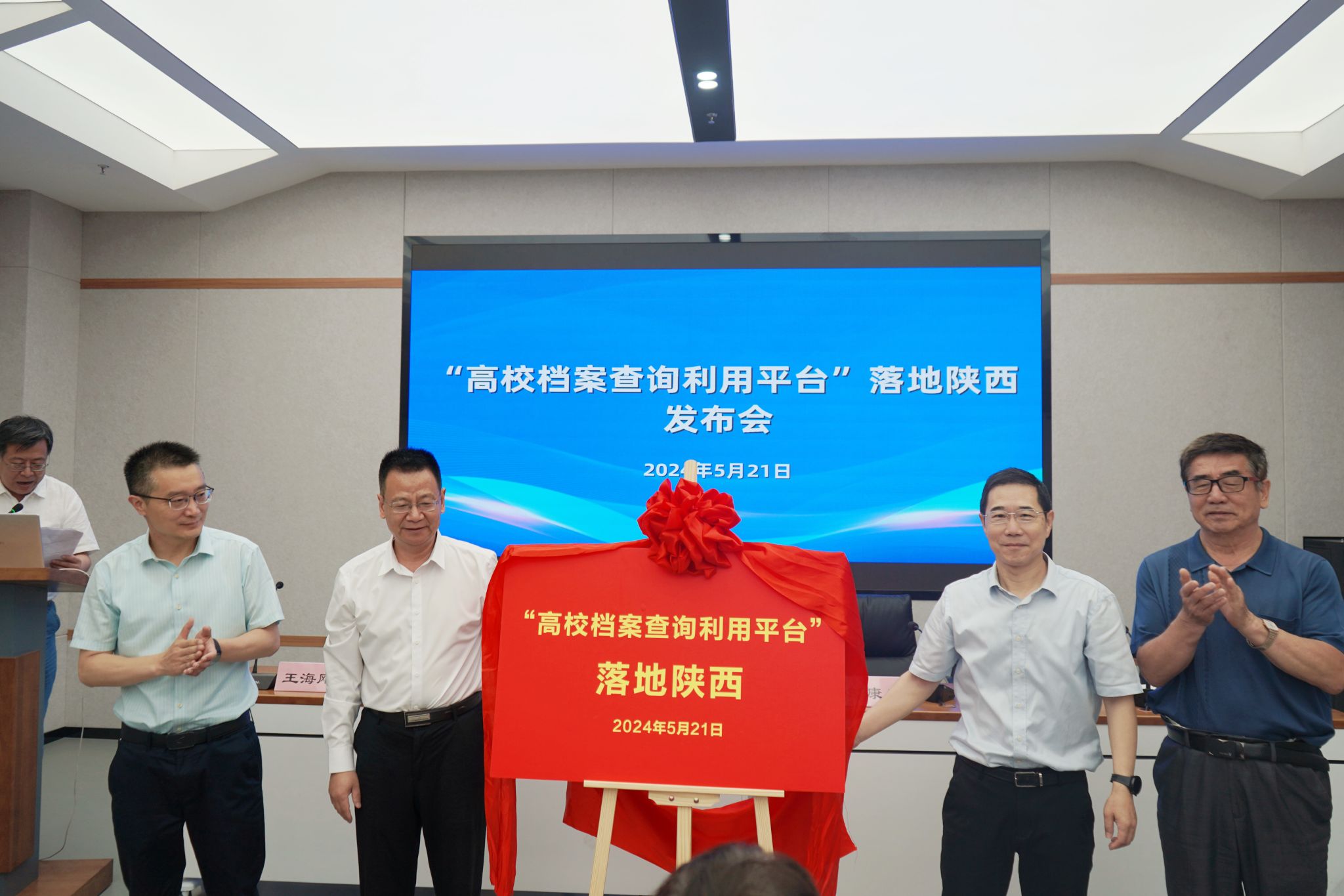 會(huì)議還舉行了“高校檔案查詢利用平臺(tái)”落地陜西發(fā)布會(huì),費(fèi)貴強(qiáng)、王康生、趙琳、吳連書共同揭牌。