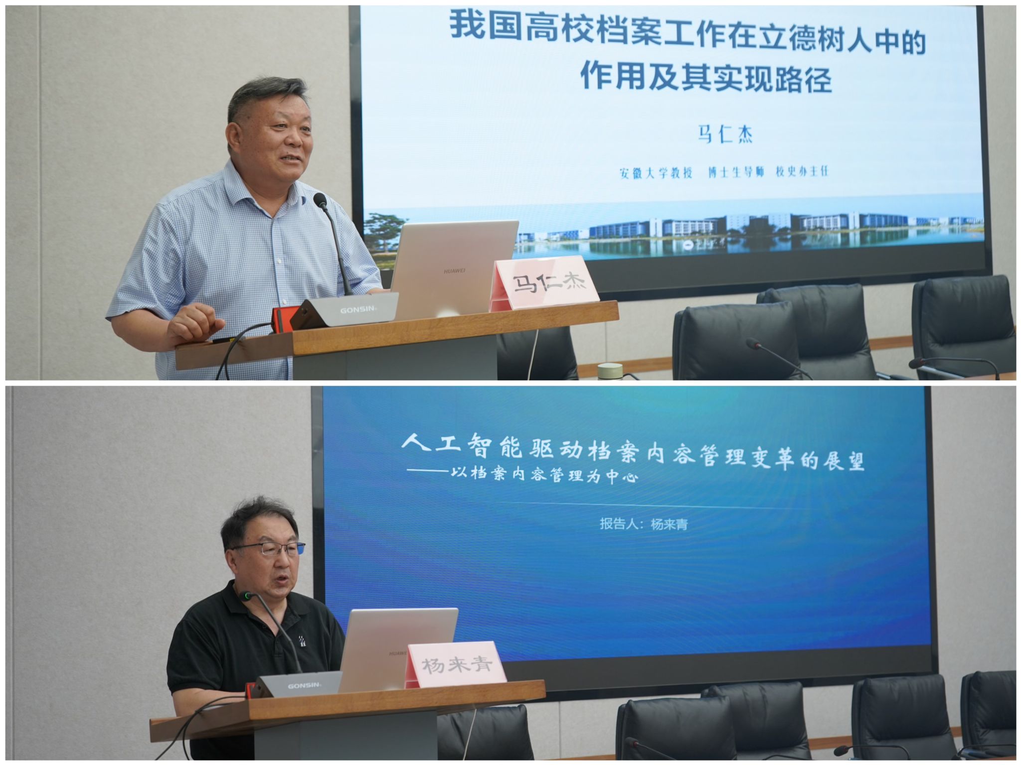 安徽大學(xué)三級(jí)教授、中國(guó)高等教育學(xué)會(huì)理事兼檔案工作分會(huì)副理事長(zhǎng)和學(xué)術(shù)部主任、中國(guó)檔案學(xué)會(huì)理事兼檔案學(xué)基礎(chǔ)理論委員會(huì)學(xué)術(shù)委員馬仁杰做了題為“我國(guó)高校檔案工作在立德樹人中的作用及其實(shí)現(xiàn)路徑”的報(bào)告。全國(guó)檔案領(lǐng)軍人才、檔案專家山東省檔案學(xué)會(huì)副理事長(zhǎng)、原青島市檔案館原二級(jí)巡視員楊來青做了題為“人工智能驅(qū)動(dòng)檔案內(nèi)容管理變革的展望”的報(bào)告。