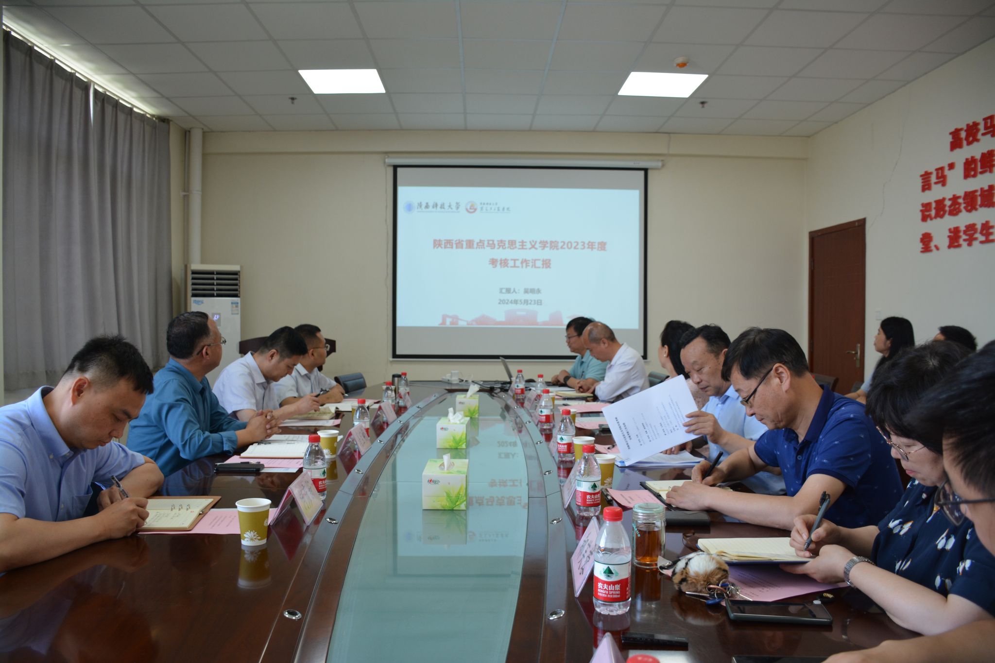 匯報會前,考察組一行深入思政課堂,聽取了馬克思主義學院曾詠輝教授主講的《思想道德與法治》課程,參觀了圖書館經(jīng)典圖書閱覽室,查閱了重點馬克思主義學院建設資料,檢查了陜西省思想政治工作重點研究基地、陜西(高校)哲學社會科學重點研究基地等科研平臺建設情況。