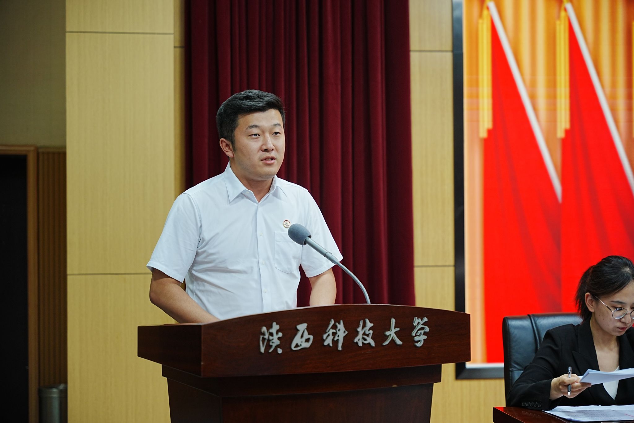 白怡暄代表省學(xué)聯(lián)對(duì)我校學(xué)生會(huì)、研究生會(huì)過去取得的成績(jī)給予高度評(píng)價(jià),并向青年代表們分享三點(diǎn)心得:一是要做到強(qiáng)化政治認(rèn)同,保持踔厲奮發(fā)姿態(tài);二是要做到堅(jiān)持服務(wù)同學(xué),始終牢記改革方向;三是要做到聚焦陜西定位,積極投身報(bào)國(guó)實(shí)踐。與省學(xué)聯(lián)和全省各級(jí)學(xué)聯(lián)、學(xué)生會(huì)組織一道攜手共進(jìn),團(tuán)結(jié)引領(lǐng)廣大同學(xué)努力成長(zhǎng)為中國(guó)特色社會(huì)主義事業(yè)的合格建設(shè)者和可靠接班人。西安交通大學(xué)學(xué)生會(huì)主席團(tuán)成員郝婧婧代表兄弟院校學(xué)生會(huì)組織向大會(huì)的順利召開表示祝賀。