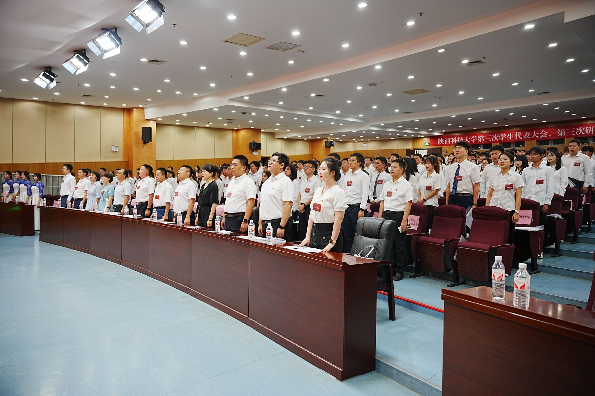 6月29日,陜西科技大學(xué)第三次學(xué)生代表大會(huì)、第三次研究生代表大會(huì)在圖書館一樓報(bào)告廳召開。校黨委副書記郭強(qiáng)、陜西省學(xué)生聯(lián)合會(huì)主席白怡暄、校黨委學(xué)工部部長(zhǎng)李曉、校黨委研工部部長(zhǎng)陸趙情、校團(tuán)委書記李鵬、各相關(guān)職能部門負(fù)責(zé)人、各學(xué)院學(xué)生工作負(fù)責(zé)人、學(xué)院團(tuán)委書記,省內(nèi)部分兄弟院校學(xué)生會(huì)、研究生會(huì)代表出席大會(huì),199名學(xué)代會(huì)代表、57名研代會(huì)代表參加大會(huì)。會(huì)議由校團(tuán)委副書記王雪婧主持。