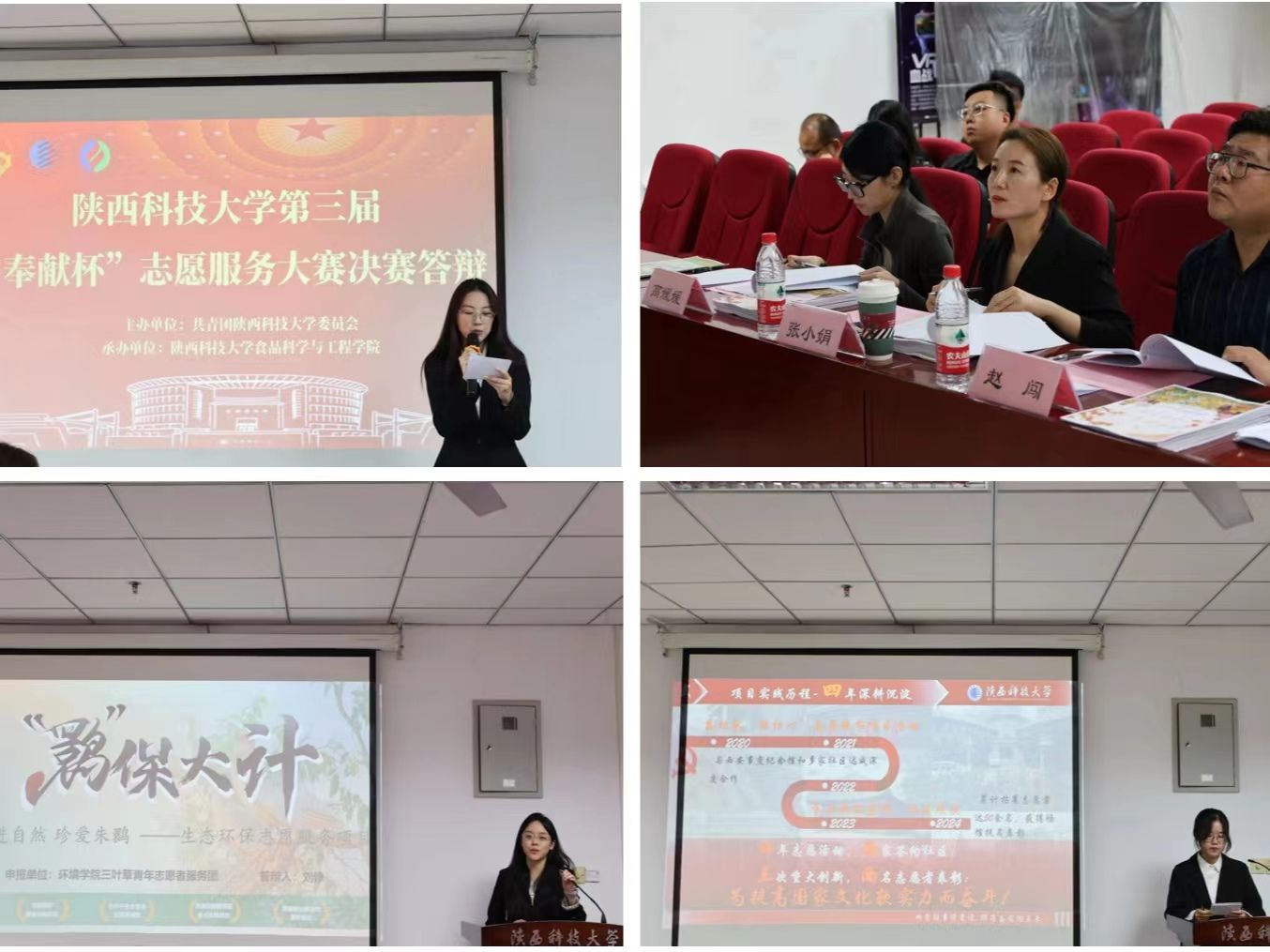本次大賽的主題是“青春心向黨 志愿新征程”,旨在挖掘更多優(yōu)秀的志愿服務項目,培育扶持一批活動規(guī)范有序、作用發(fā)揮明顯的志愿服務組織,選樹一批講奉獻、敢擔當、有作為的青年志愿者,促進我校志愿服務高質(zhì)量發(fā)展。自今年3月份啟動以來,各學院團委積極響應,廣大志愿服務團隊和志愿者踴躍參與,通過自主申報、學院推薦的方式,共有110個項目和500余名志愿者報名參與。通過學院推報、資質(zhì)審查、書評評審、路演答辯等環(huán)節(jié),共評選出志愿服務先進集體5個,志愿服務先進工作者5名;項目部分共評選出優(yōu)秀項目11個,創(chuàng)新項目獎6個,青年志愿服務優(yōu)秀教師14名,其中,優(yōu)秀項目賽道評選出一等獎1名,二等獎2名,三等獎3名,優(yōu)秀獎5名;創(chuàng)新項目賽道評選出一等獎1名,二等獎2名,三等獎3名;個人部分評選出志愿服務標兵14名,優(yōu)秀志愿者33名。最終,設計與藝術學院(絲路文化與傳播學院)捧得“奉獻杯”,食品科學與工程學院(生物與醫(yī)藥學院)、環(huán)境科學與工程學院(碳中和科學與技術學院)一同獲評“陜西科技大學志愿服務優(yōu)秀組織單位”。