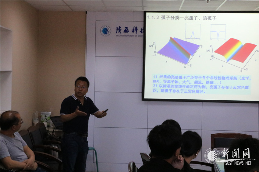 5月16日上午,“導(dǎo)師論壇”系列學(xué)術(shù)報告在文理學(xué)院會議室舉行,來自西北大學(xué)的楊戰(zhàn)營教授應(yīng)邀作了題目為“類非線性薛定諤系統(tǒng)中局域波動力學(xué)”的學(xué)術(shù)報告。報告由文理學(xué)院黨委書記、物理學(xué)科學(xué)術(shù)帶頭人劉建科教授主持,參加本次學(xué)術(shù)報告的有物理系中青年教師、碩士研究生導(dǎo)師、研究生等。