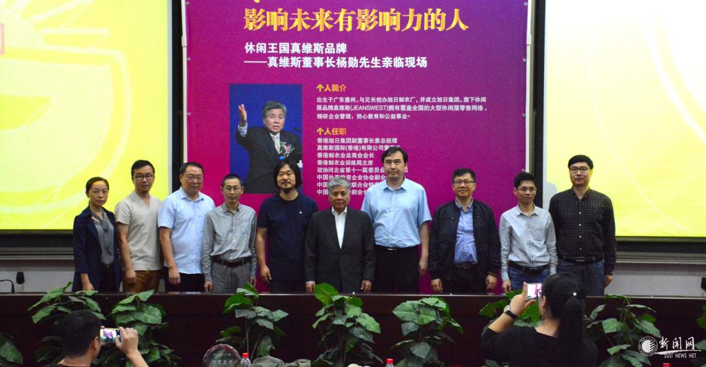 9月9日,應(yīng)設(shè)計與藝術(shù)學(xué)院邀請,真維斯國際(香港)有限公司董事長楊勛來我校,在3號教學(xué)樓101教室為師生做了題為“創(chuàng)業(yè)與守業(yè)”的報告會。此前該報告已在北京大學(xué)、清華大學(xué)等91所高校引起強烈反響,陜科大作為高校分享的第115站,吸引了近500名學(xué)生參會。真維斯公司相關(guān)負(fù)責(zé)人、學(xué)院班子成員、教師代表出席會議。報告會由設(shè)藝學(xué)院執(zhí)行院長詹秦川主持。