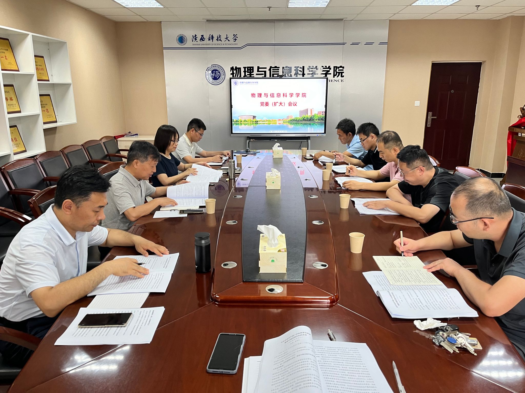 7月23日上午,物理學院召開黨委(擴大)會議,專題學習貫徹黨的二十屆三中全會精神,研究安排貫徹落實工作。會議由學院黨委書記陳源梅主持,學院黨委委員、班子成員、組織員、全體黨支部書記參加會議。
