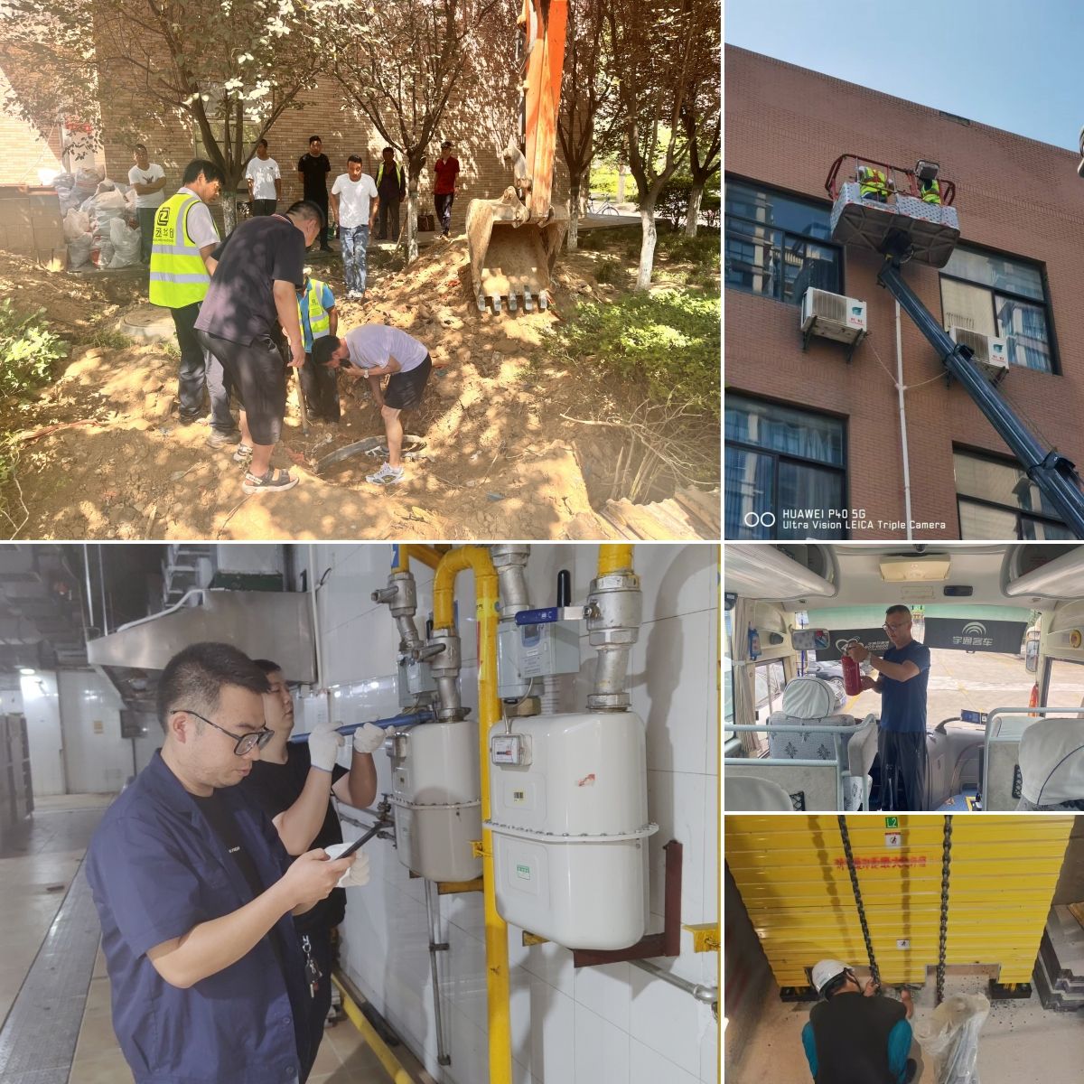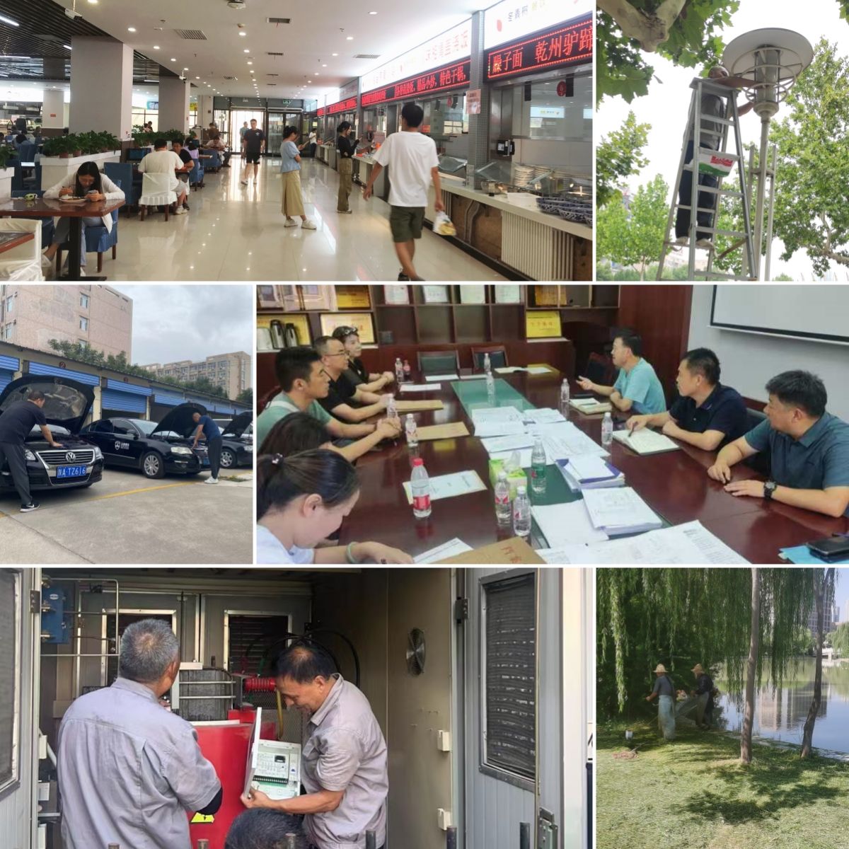 堅(jiān)守底線,安全穩(wěn)定放首位。集團(tuán)始終將安全穩(wěn)定放在第一位,嚴(yán)格落實(shí)各項(xiàng)安全管理制度,嚴(yán)格值班值守,常態(tài)化做好日常安全檢查督查,科學(xué)調(diào)整高溫天氣室外作業(yè)時(shí)間,先后對(duì)校內(nèi)6臺(tái)變壓器及部分高壓電纜進(jìn)行耐壓、絕緣預(yù)防性試驗(yàn),合理規(guī)劃校園和沁園小區(qū)電動(dòng)自行車充電樁區(qū)域建設(shè),時(shí)刻關(guān)注食品安全、燃?xì)獍踩蜕a(chǎn)安全,確保各項(xiàng)工作順利開(kāi)展。