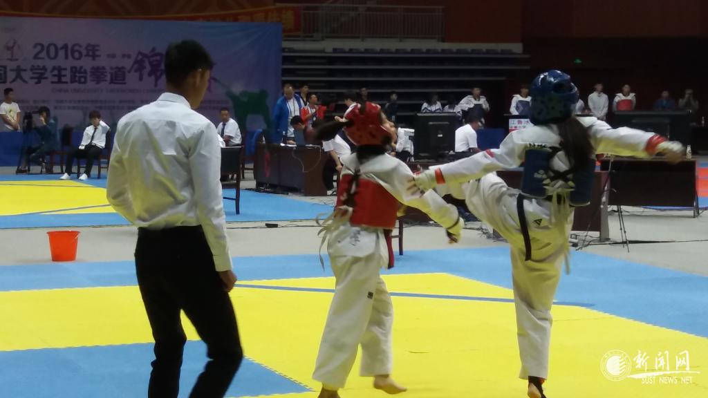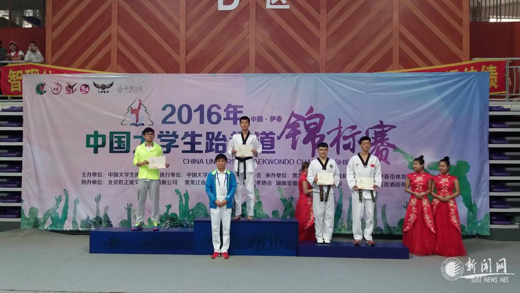 6月22至26日,全國大學生跆拳道錦標賽在黑龍江伊春市紅松體育館拉開戰(zhàn)幕,來自全國117所高校的1027名運動員參加了本次比賽。我校跆拳道代表隊5名運動員參加了此次錦標賽。經(jīng)過五天緊張激烈的角逐,我校食品學院張德輝獲得男子甲組74kg級冠軍;經(jīng)管學院張增獲得女子甲組46kg級季軍;設藝學院邱程獲得男子甲組80kg級第五名。同時,張德輝同學獲得優(yōu)秀運動員稱號;體育部孫云獲得優(yōu)秀教練員稱號。