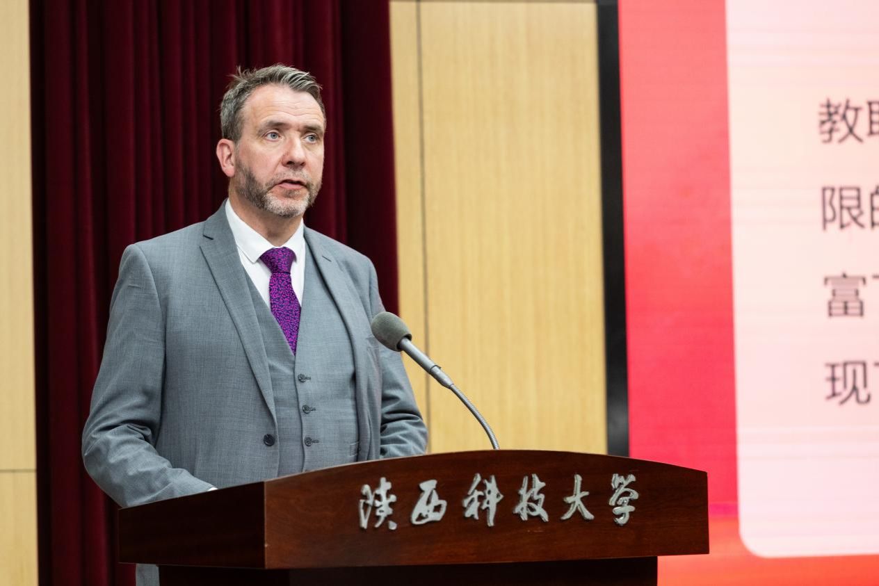 9月4日上午,阿爾斯特學(xué)院在圖書館報(bào)告廳隆重舉行2024級新生開學(xué)典禮。陜西科技大學(xué)副校長費(fèi)貴強(qiáng),阿爾斯特大學(xué)副校長Colin Turner,陜西科技大學(xué)國際合作與交流處處長張素風(fēng),阿爾斯特學(xué)院黨政班子成員,學(xué)院全體教職工、中外方教師代表及2024級全體新生參加典禮。典禮由阿爾斯特學(xué)院常務(wù)副院長薛朝華主持。