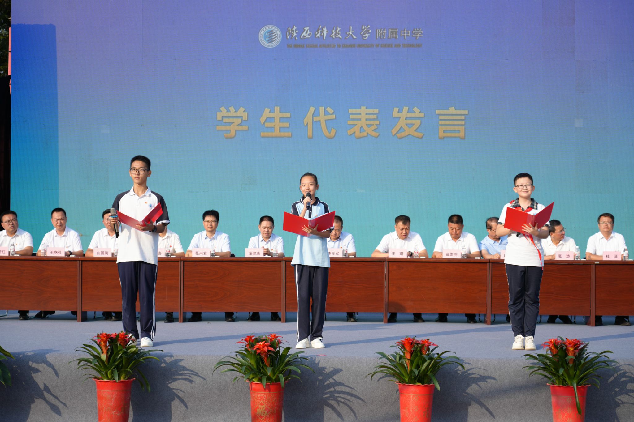 六年級5班黃彥博、初一2班金子涵、高二9班李昊軒作為學生代表進行了發(fā)言。