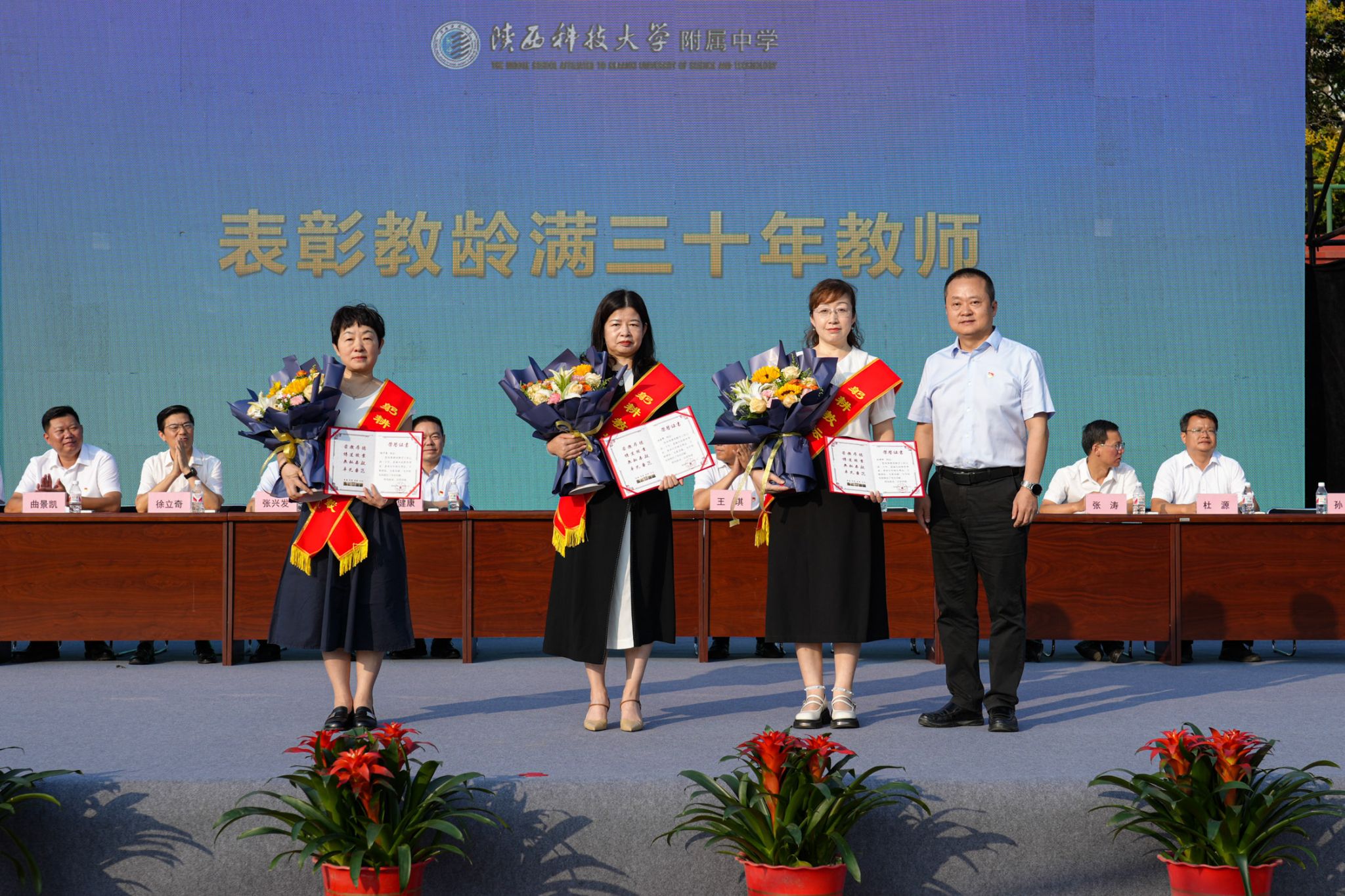 9月6日上午,附屬中學2024—2025學年開學典禮暨慶祝第40個教師節(jié)表彰大會在附中田徑場隆重舉行。校黨委副書記李學軍出席大會并為教齡滿三十年教師頒發(fā)榮譽證書。