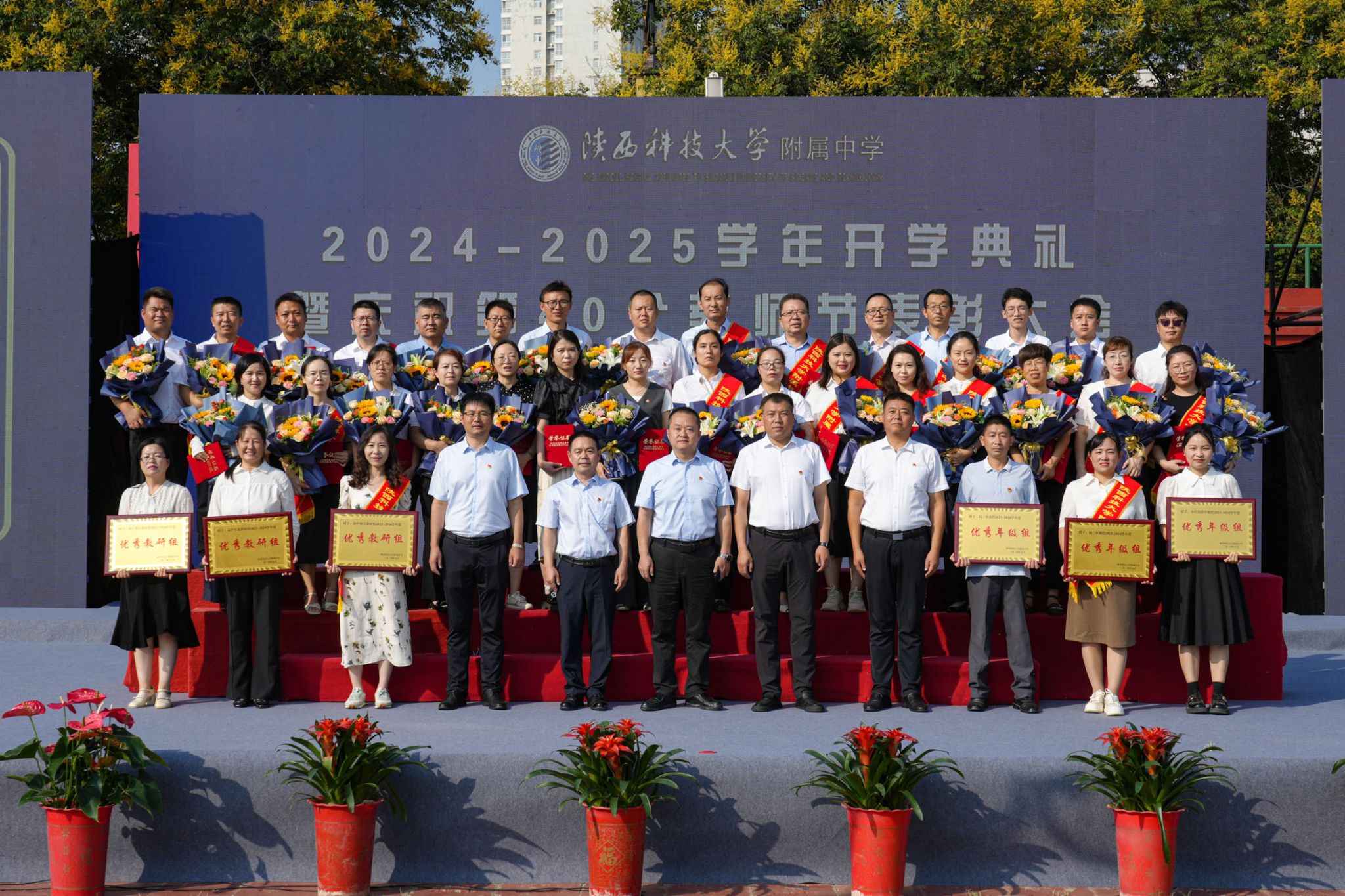 大會對在2023-2024學年涌現(xiàn)出的20個“優(yōu)秀班集體”、172名“三好學生”、101名“優(yōu)秀學生干部”及榮獲“優(yōu)秀年級組”“優(yōu)秀教研組”“最美教師”“優(yōu)秀教師”“優(yōu)秀班主任”“教學標兵”“師德先進個人”“工會工作積極分子”榮譽稱號的集體和個人進行了表彰。與會領導為獲獎集體和個人頒獎。